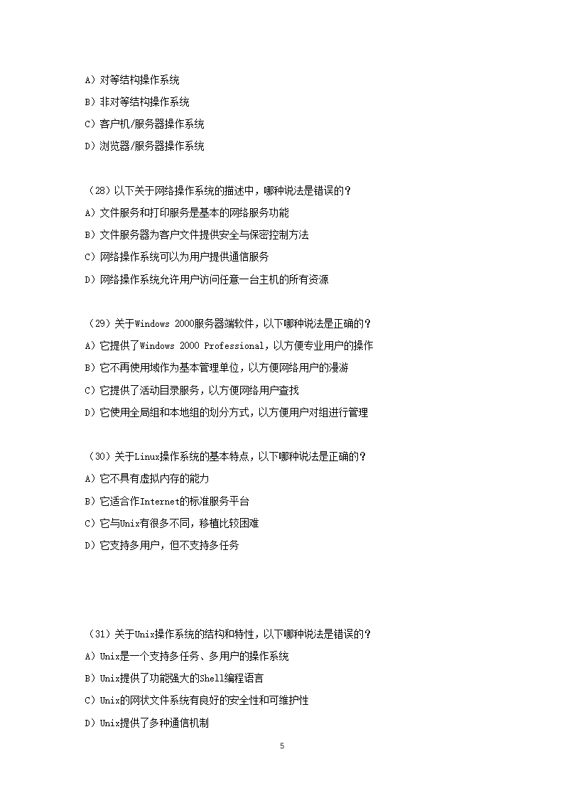 【文档预览】 无忧考网整理发布2005年9月全国计算机三级网络技术考试真题及答案(Word版),前五页预览如下: