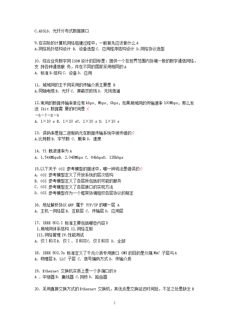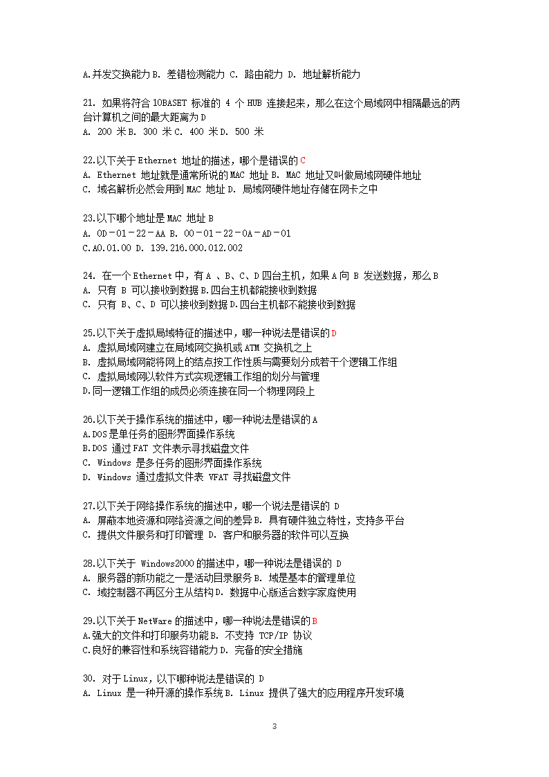 【文档名称】 2006年9月全国计算机三级网络技术考试真题及答案(Word版).doc