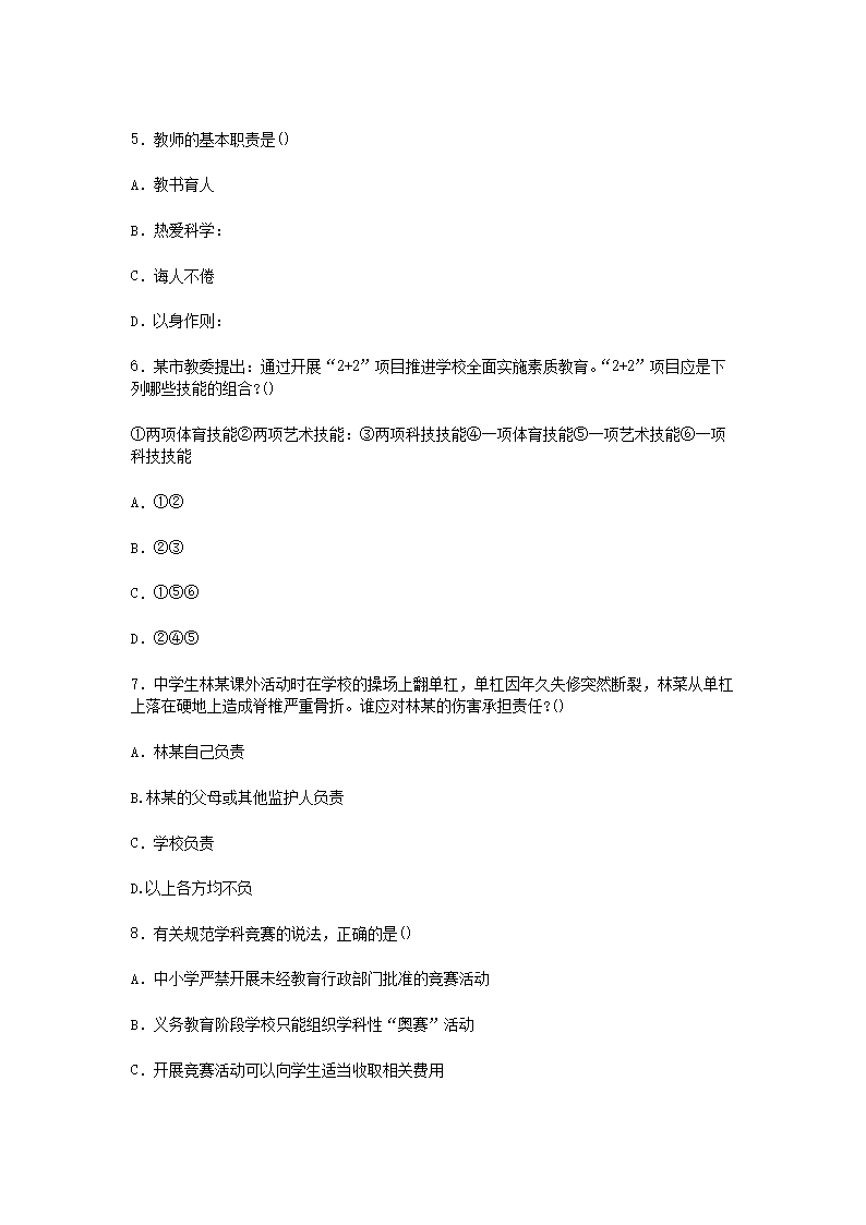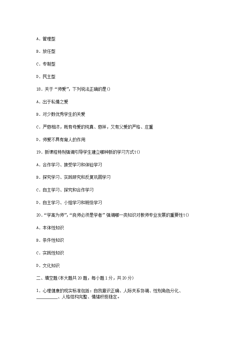 【文档名称】 2014年天津滨海新区教师招聘考试真题及答案(Word版).doc