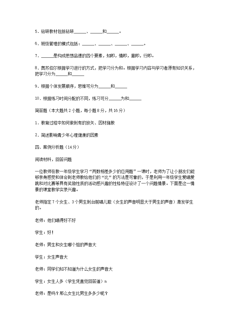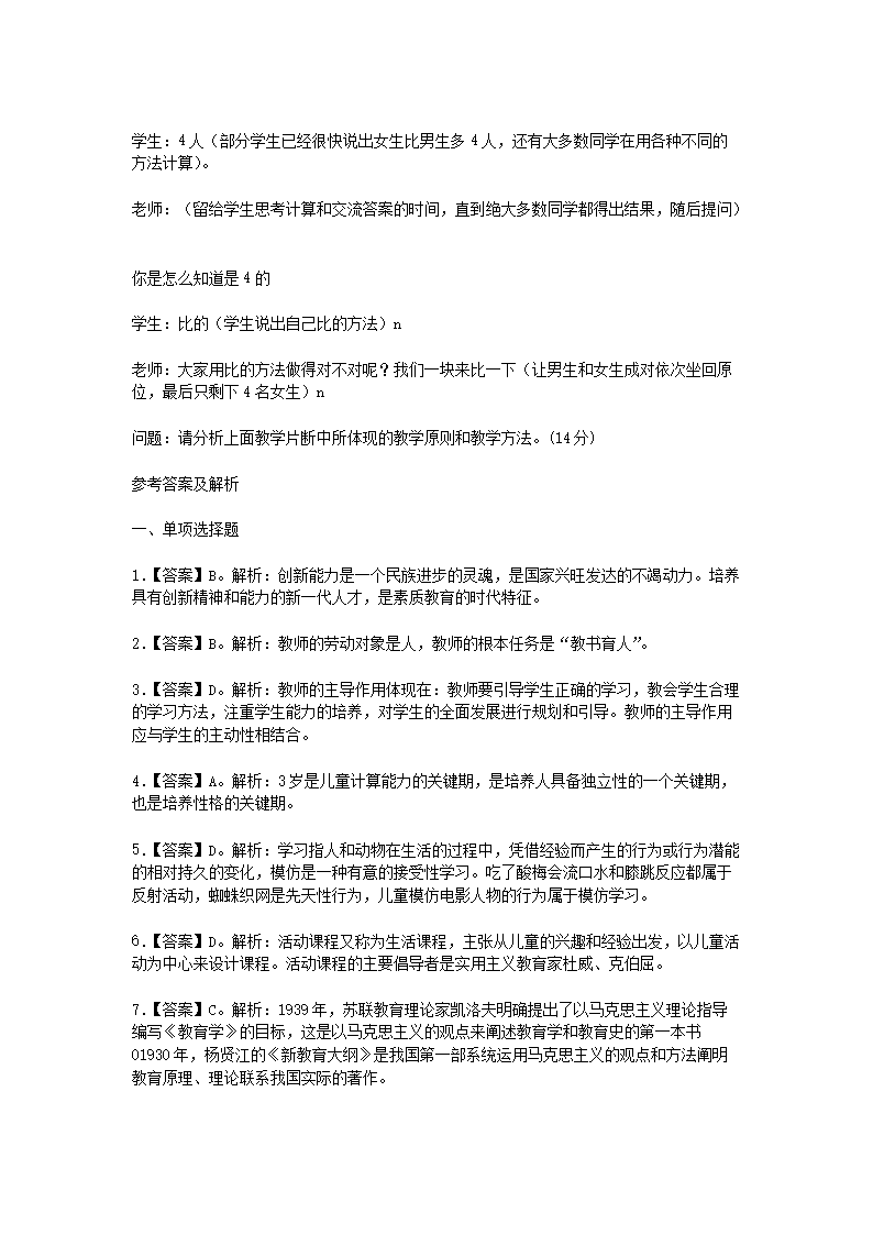【文档名称】 2016年3月6日湖南永州宁远县小学幼儿教师招聘考试真题及答案(Word版).doc