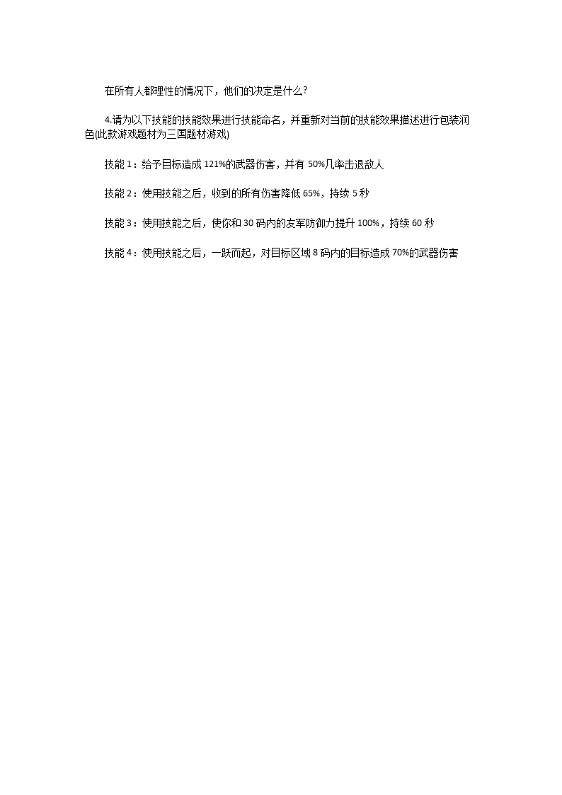 【文档名称】 2015腾讯游戏策划校园招聘笔试试题(Word版).doc