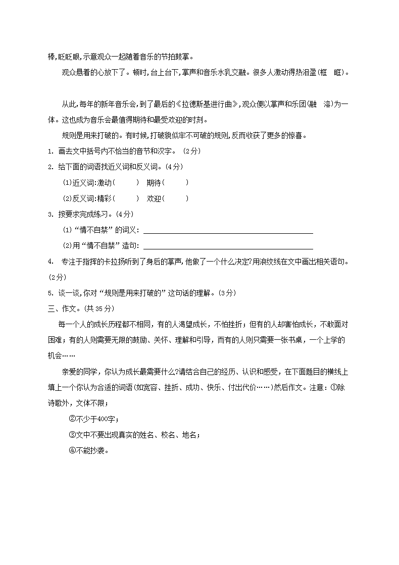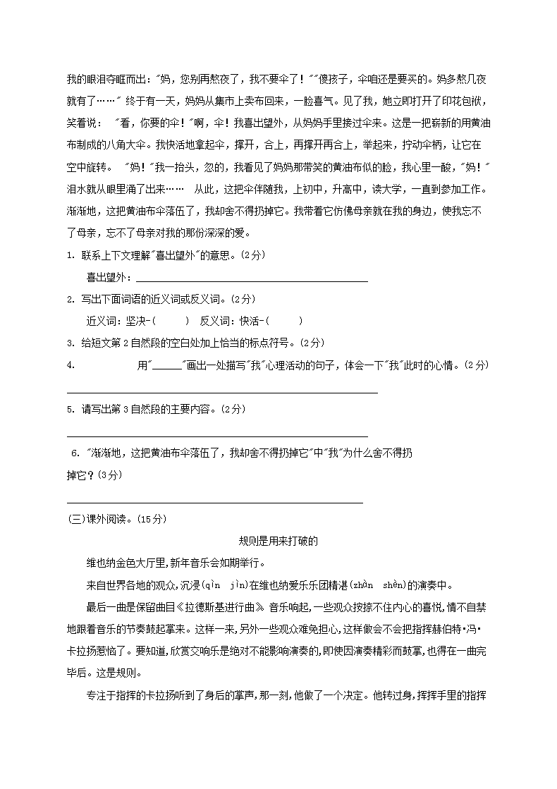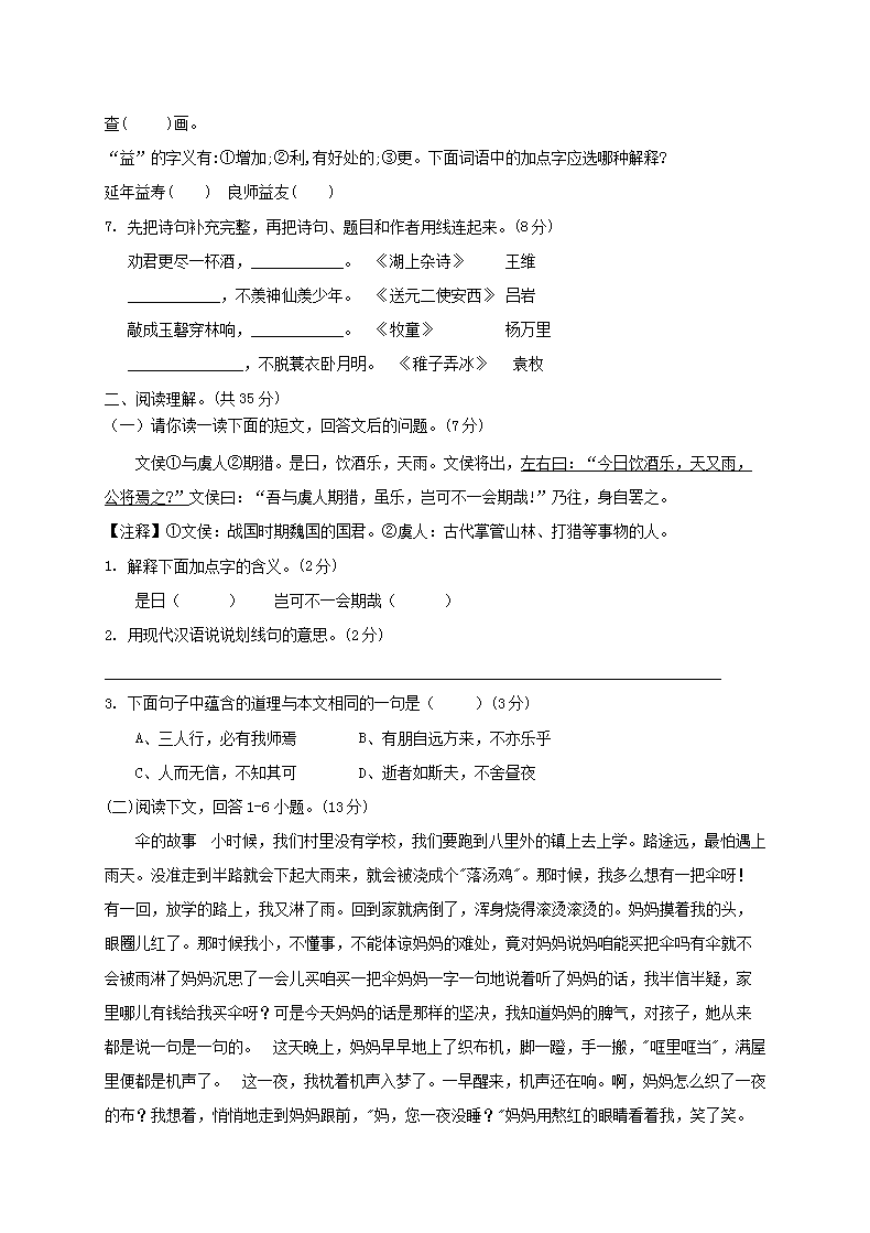 【文档预览】 无忧考网整理发布2019年新疆小升初语文真题及答案(Word版),前五页预览如下: