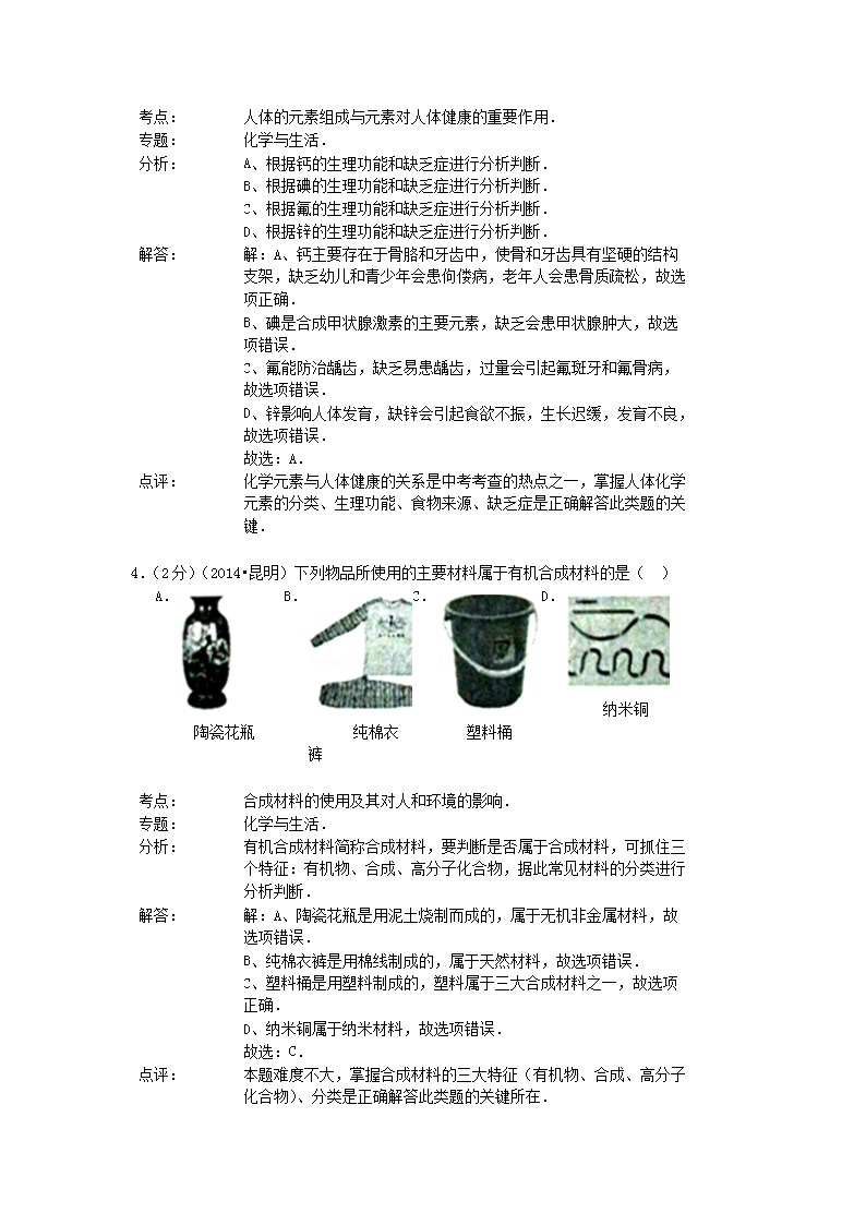 【文档名称】 2014年云南昆明中考化学真题及答案(Word版).doc