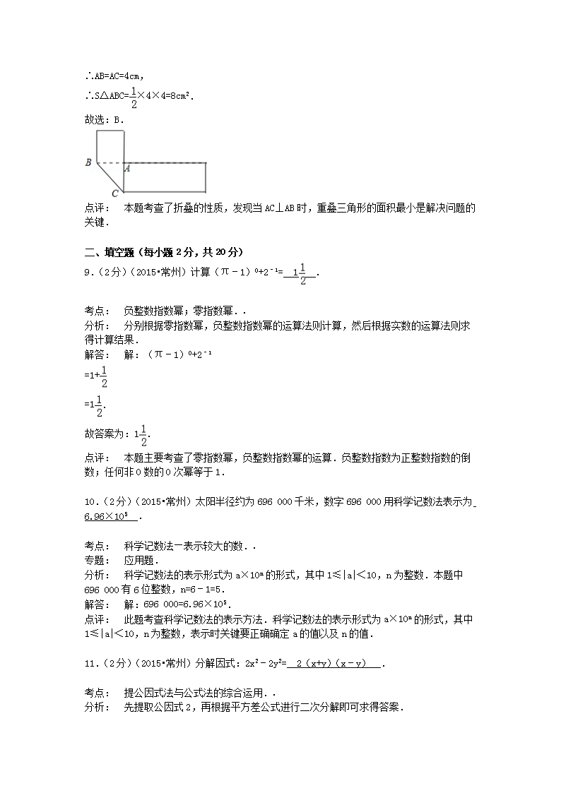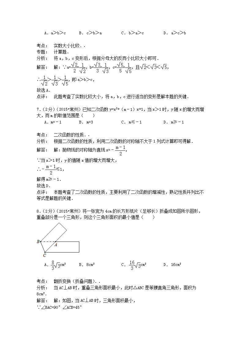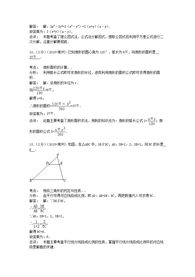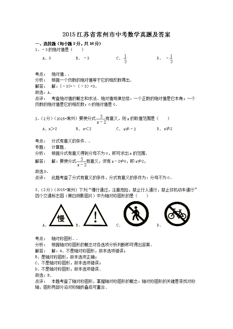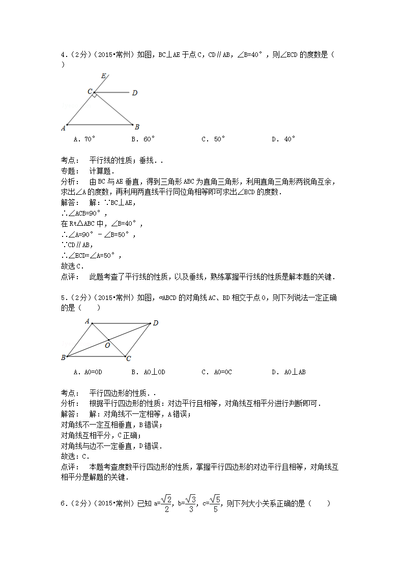 【文档名称】 2015江苏省常州市中考数学真题及答案(Word版).doc