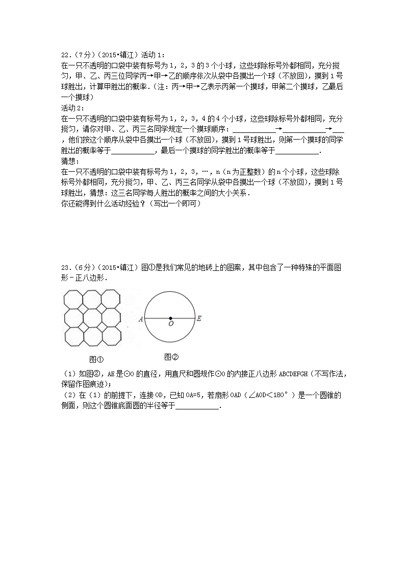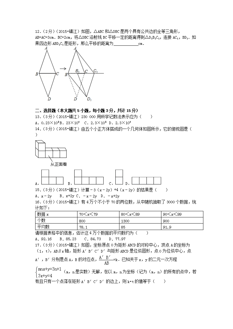【文档名称】 2015江苏省镇江市中考数学真题及答案(Word版).doc
