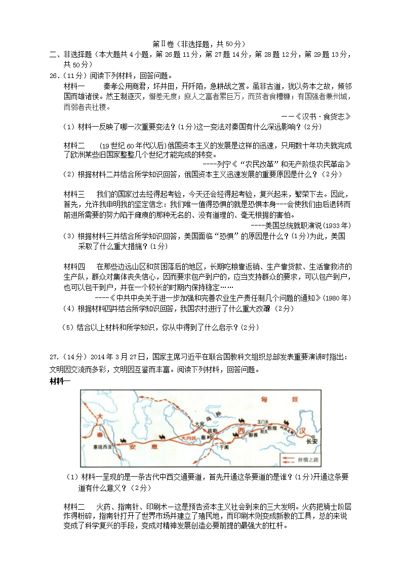 【文档名称】 2014年云南曲靖中考历史真题及答案(Word版).doc