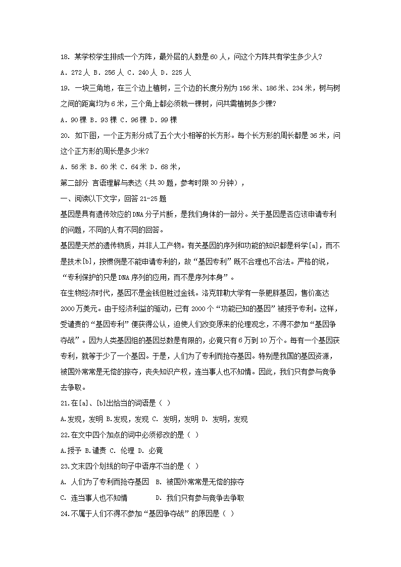 【文档预览】 无忧考网整理发布2004年广东深圳公务员行测考试真题及答案(Word版),前五页预览如下: