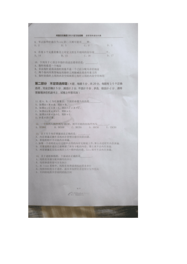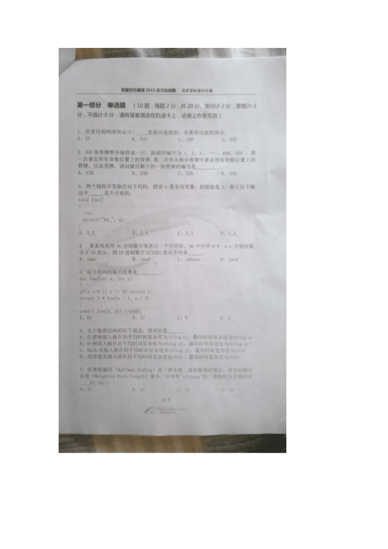 【文档名称】 2013年5月19日阿里巴巴校园招聘笔试题完整版(图片版).doc