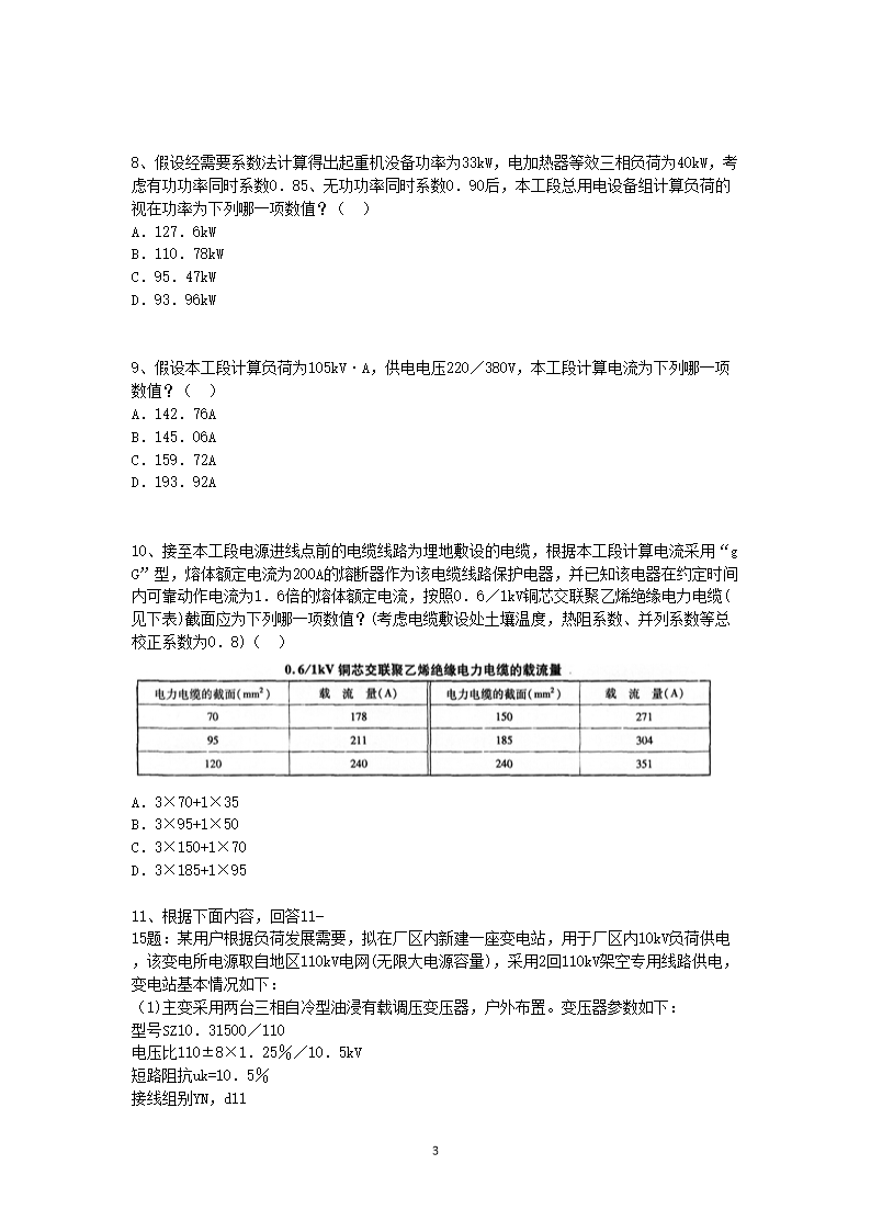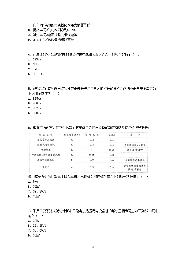 【文档名称】 2011年电气工程师供配电专业案例考试真题及答案上午卷(Word版).doc