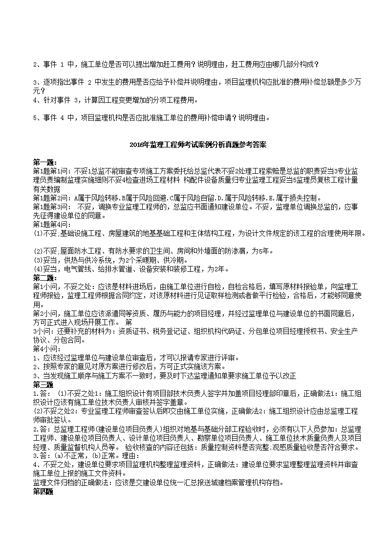 【文档名称】 2016年监理工程师考试案例分析真题及答案(Word版).doc