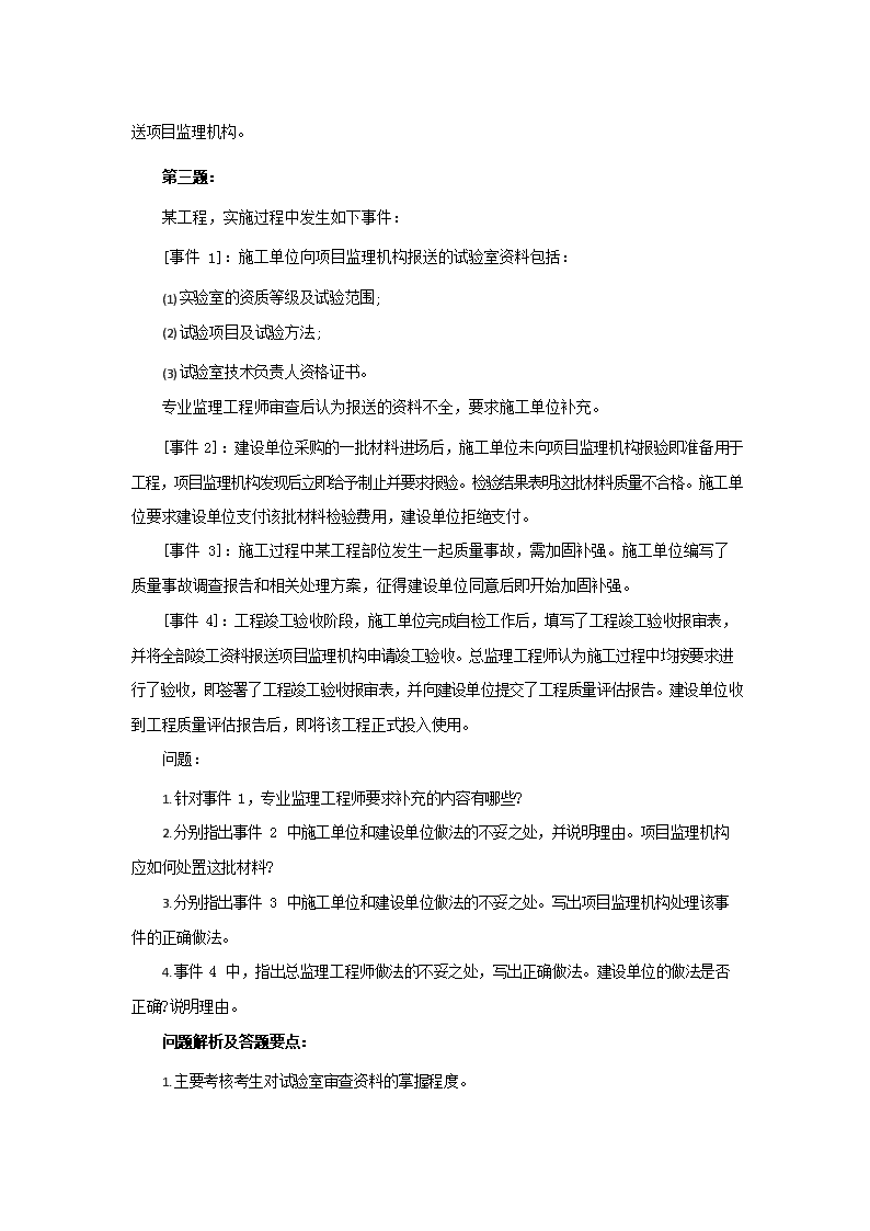 【文档名称】 2014年监理工程师考试案例分析真题及答案(Word版).doc