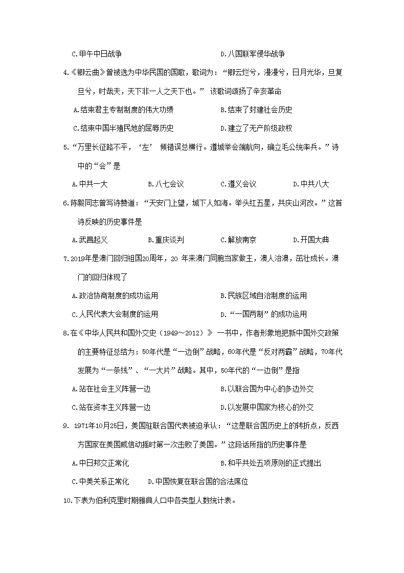 【文档名称】 2019年贵州普通高中会考历史真题及答案(Word版).doc