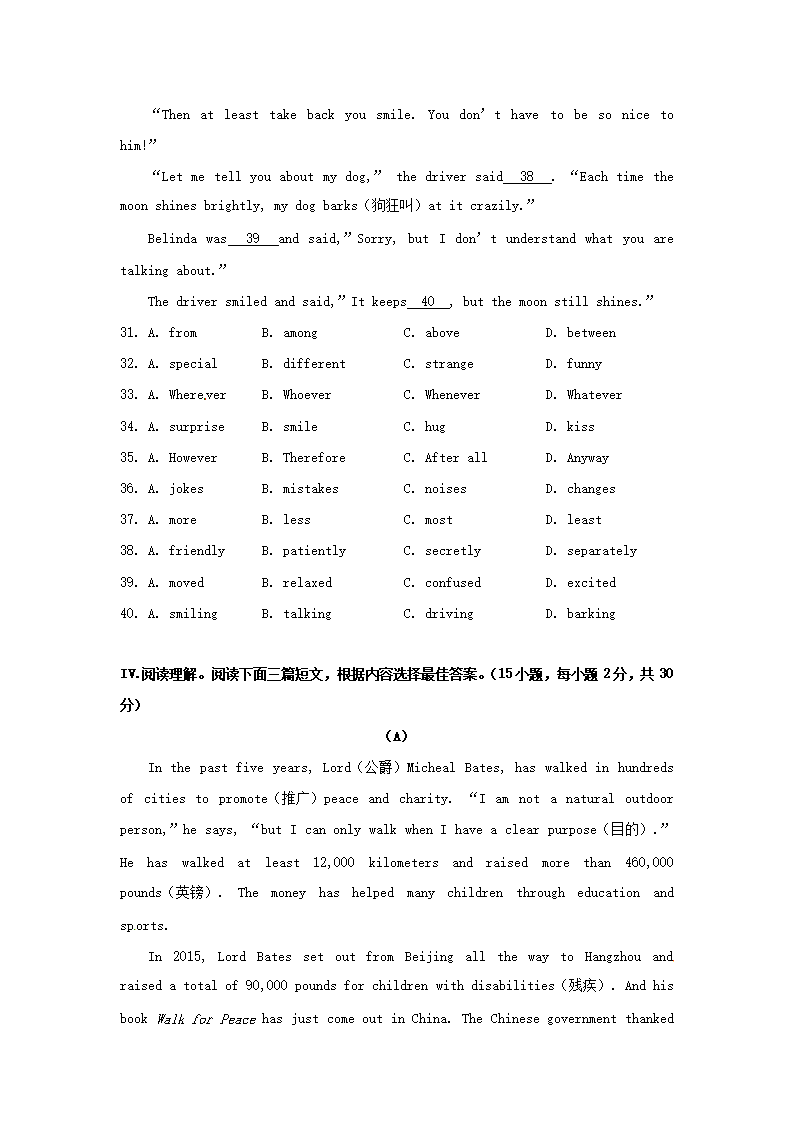 【文档名称】 2017年贵州省黔西南州中考英语试题及答案(Word版).doc
