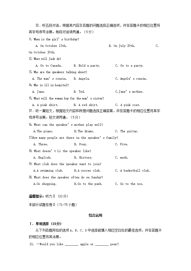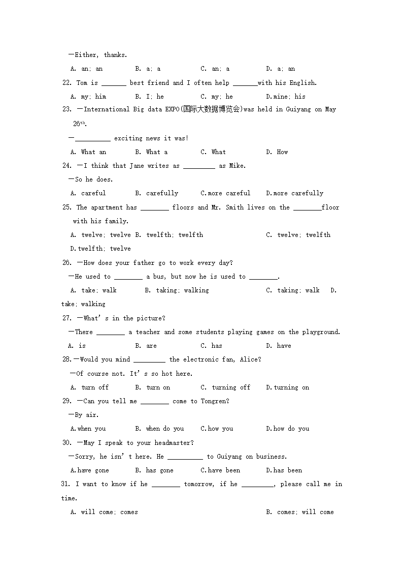 【文档名称】 2017年贵州省铜仁市中考英语试题及答案(Word版).doc