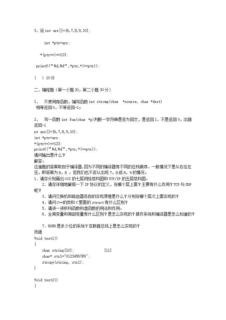 【文档名称】 2012年华为校园招聘笔试题合集(Word版).doc