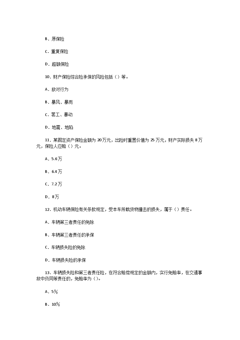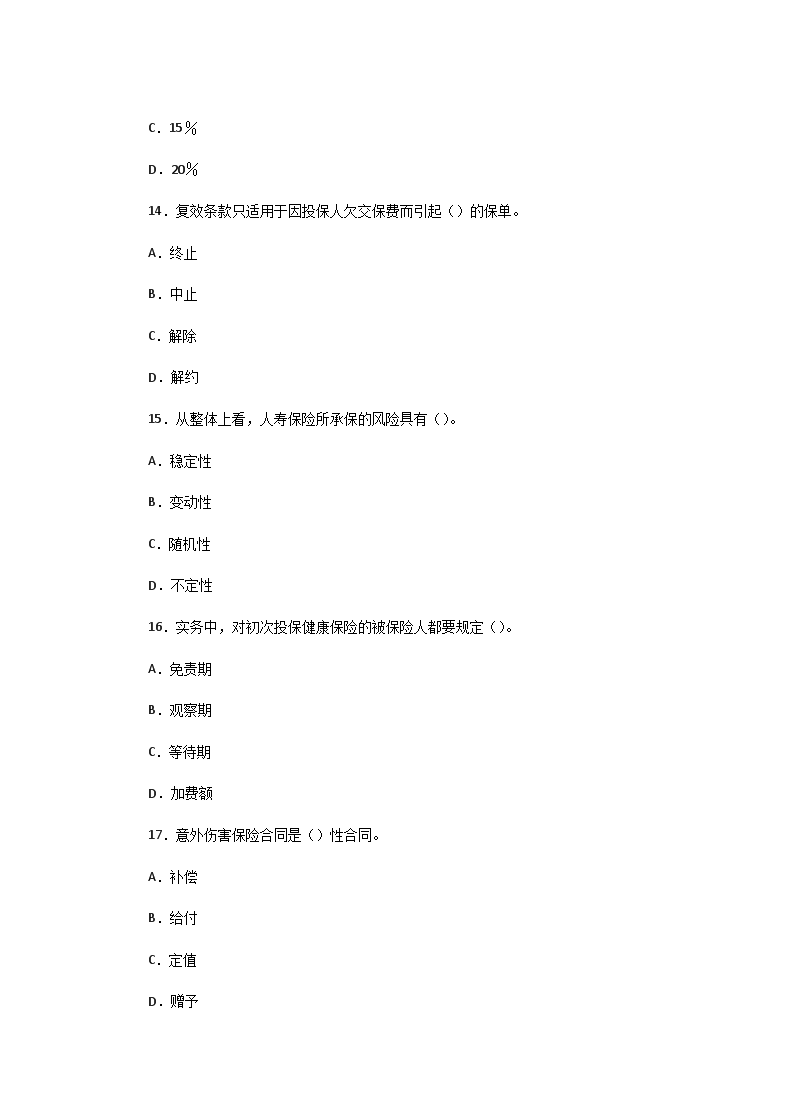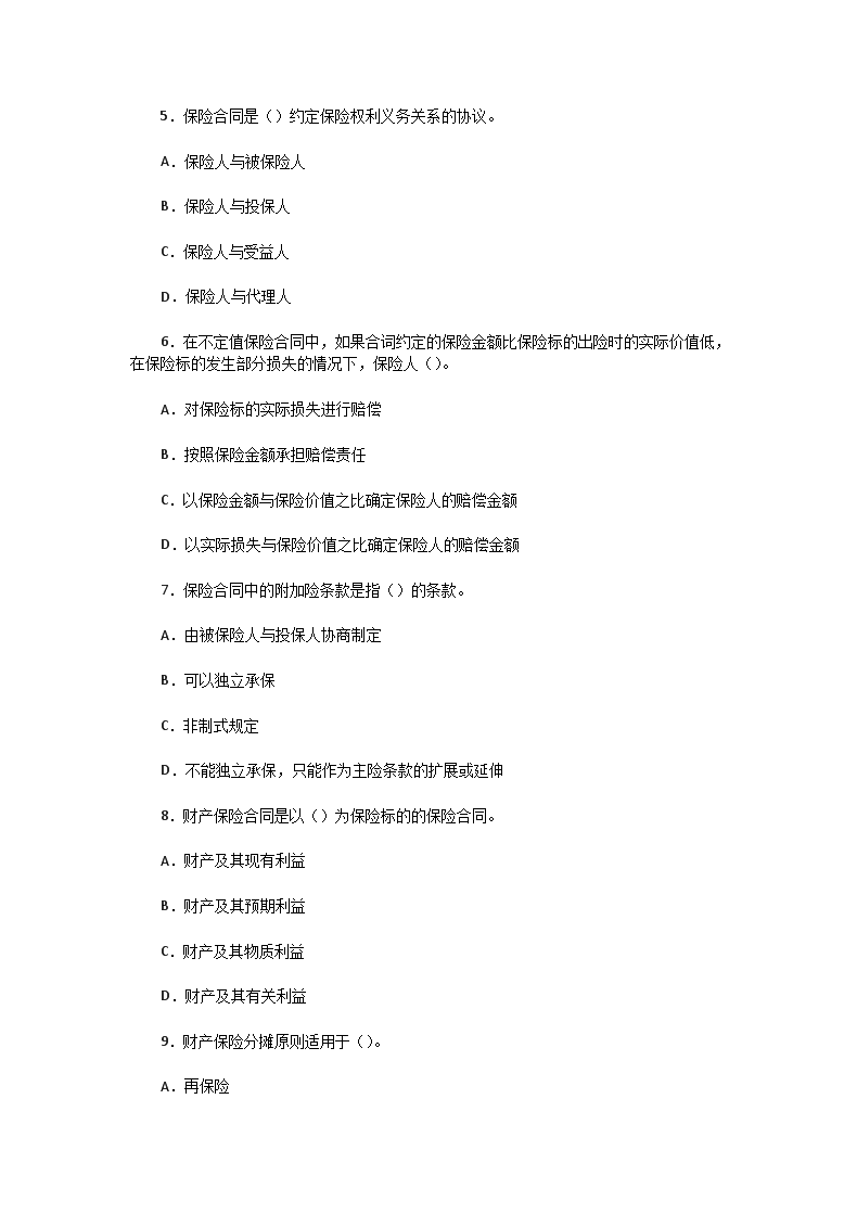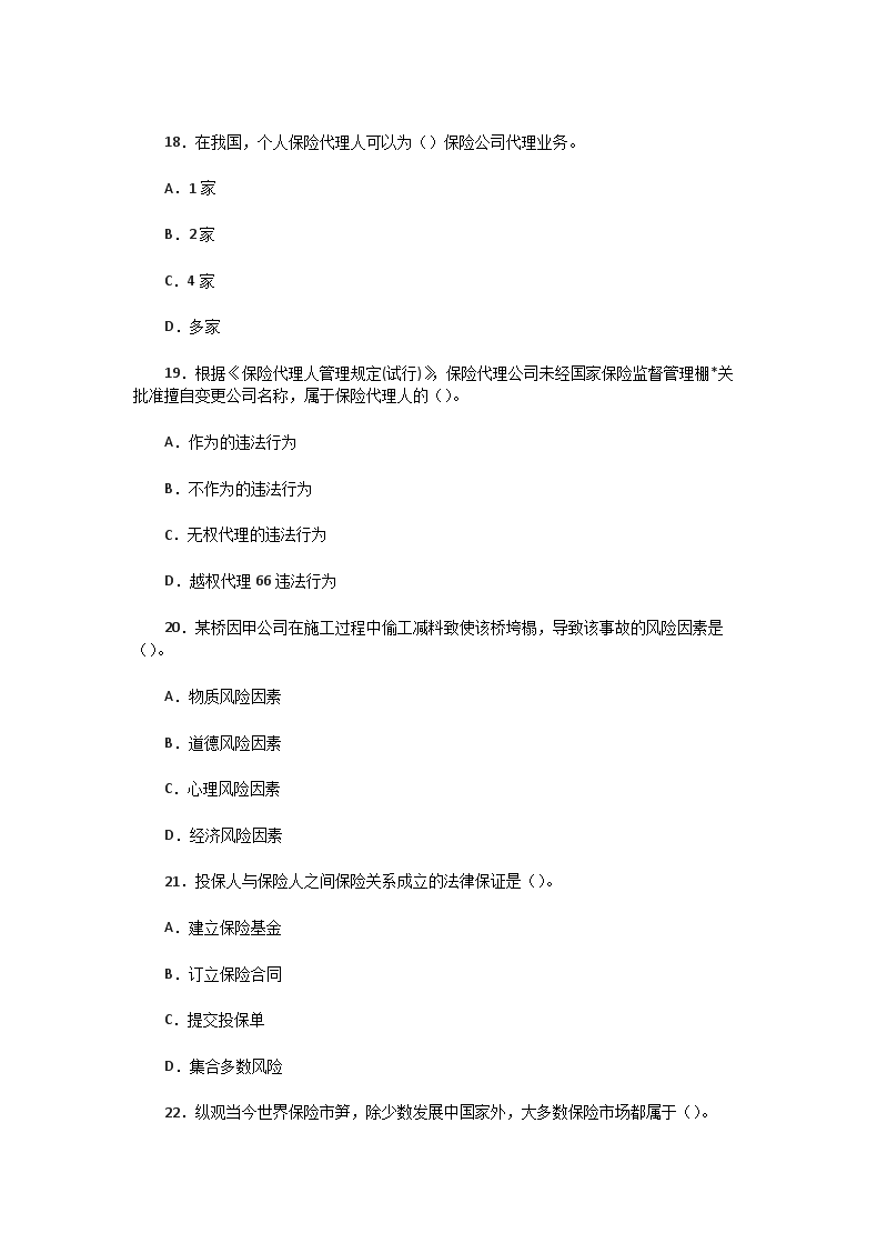 【文档名称】 2003年保险代理从业人员基本资格考试真题(Word版).doc