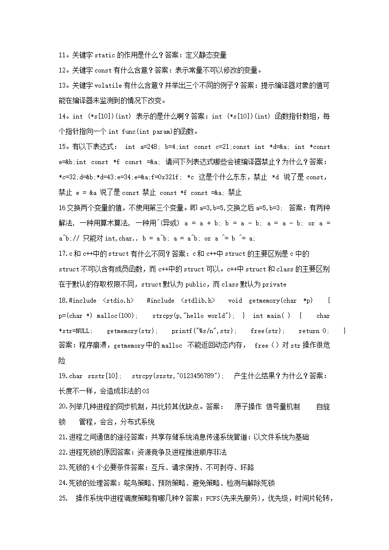 【文档名称】 华为校园招聘软件工程师笔试题(Word版).doc