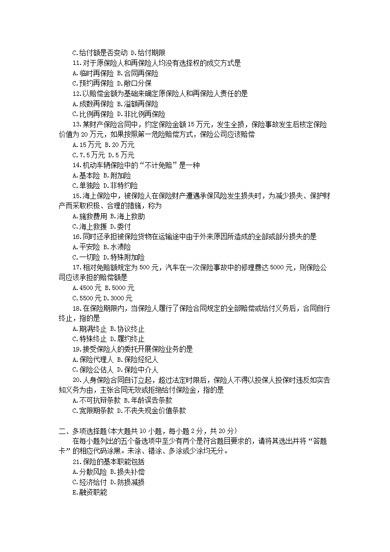 【文档预览】 无忧考网整理发布2018年10月福建自考经济类保险学原理考试真题(Word版),前五页预览如下: