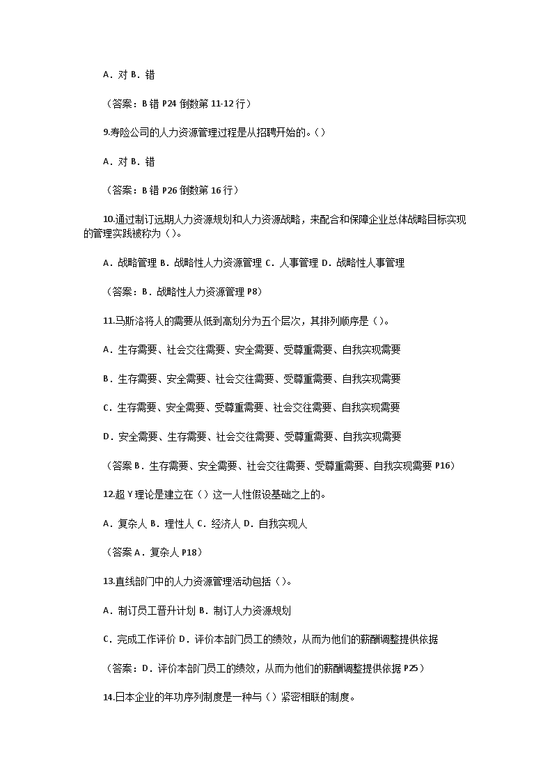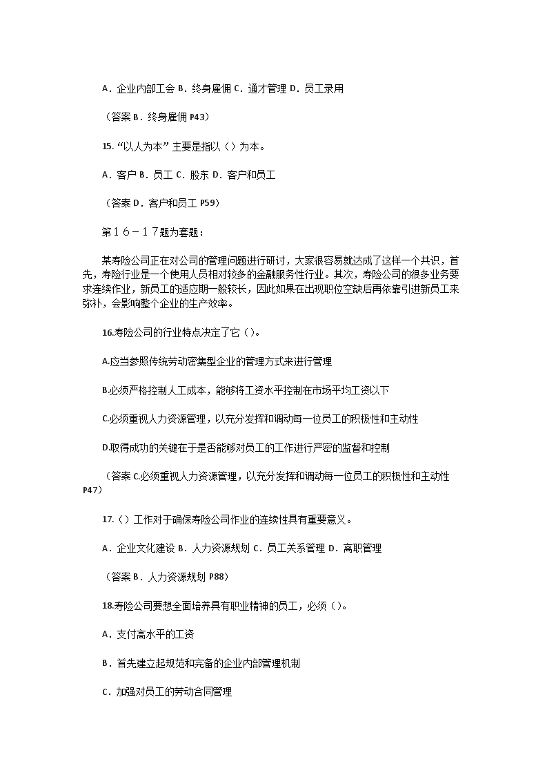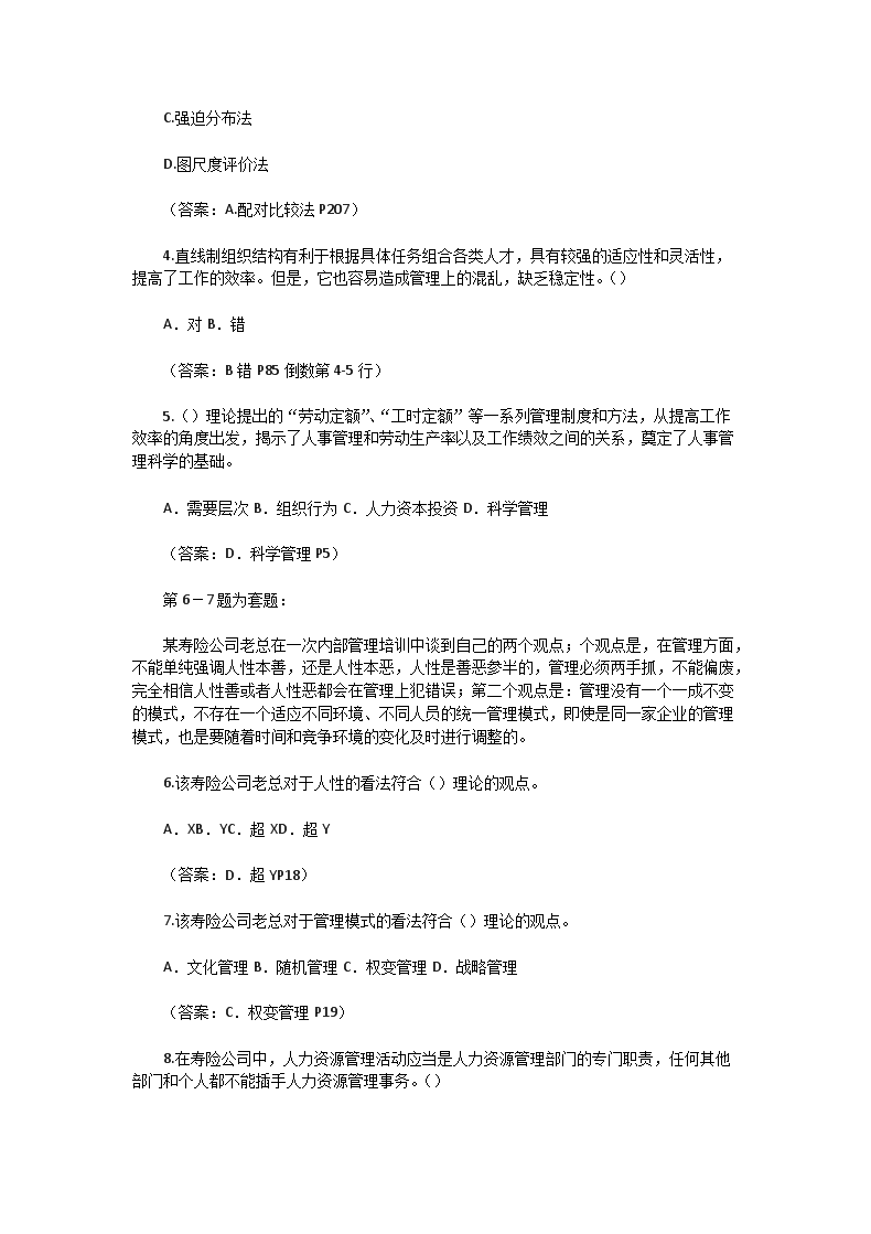 【文档名称】 2009下半年保险从业寿险管理师资格考试人力资源管理真题及答案(Word版).doc