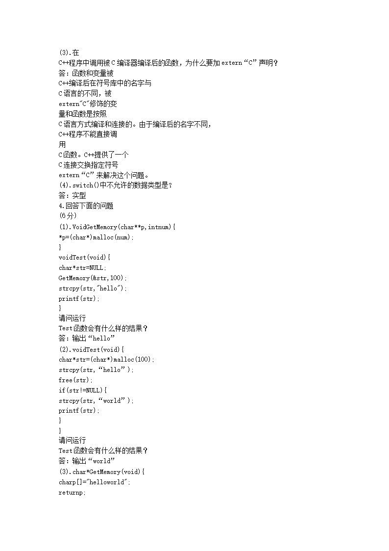 【文档名称】 华为校园招聘考试C语言C++笔试题(Word版).doc