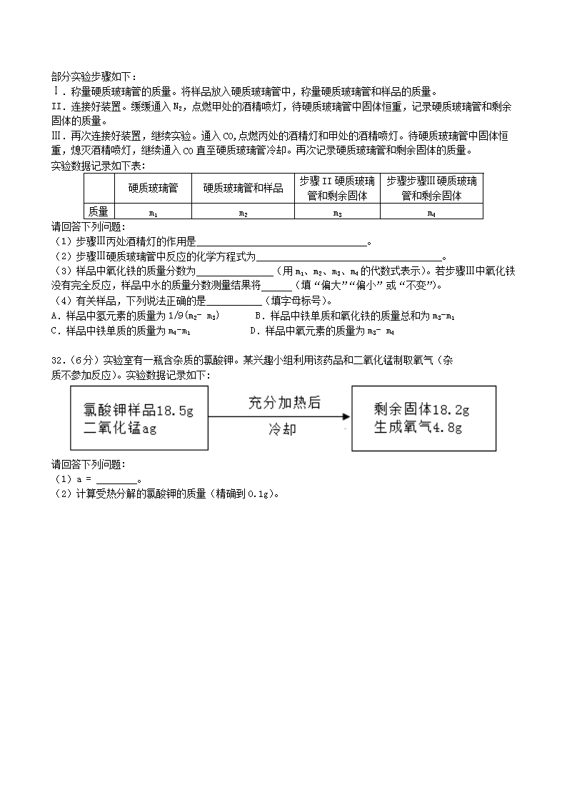 【文档预览】 无忧考网整理发布2019年湖北省武汉市中考化学真题及答案(Word版),前五页预览如下: