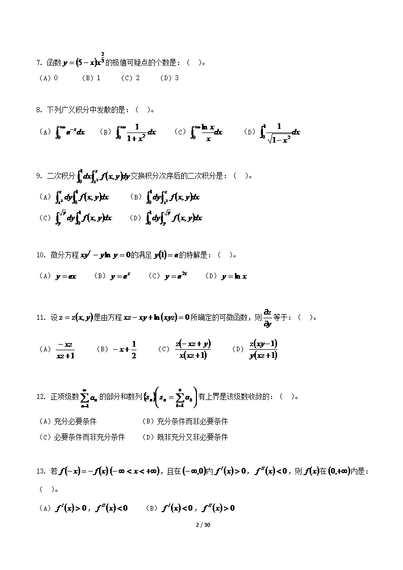 【文档预览】 无忧考网整理发布2013年注册电气工程师公共基础考试真题及答案(Word版),前五页预览如下:
