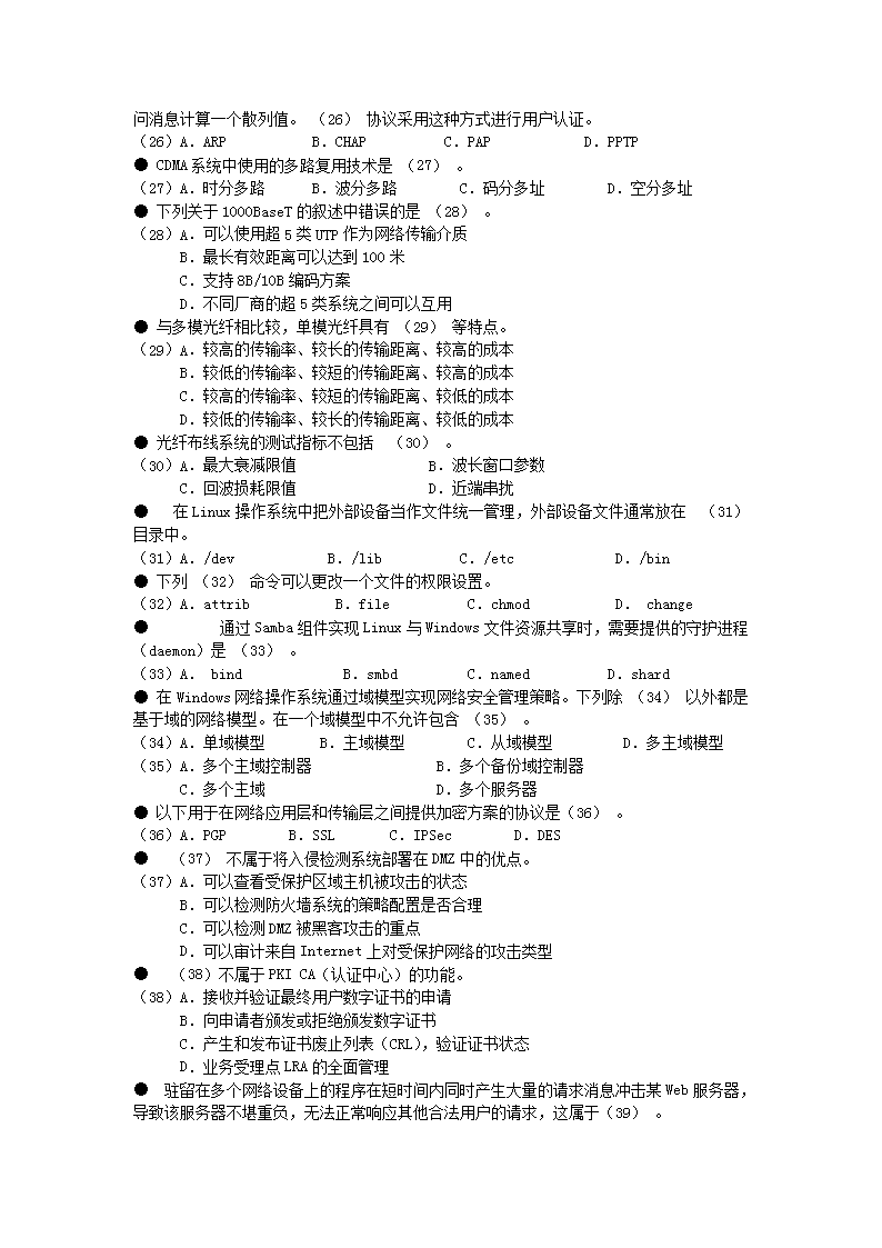 【文档名称】 2006上半年网络工程师考试真题及答案-上午卷(Word版).doc