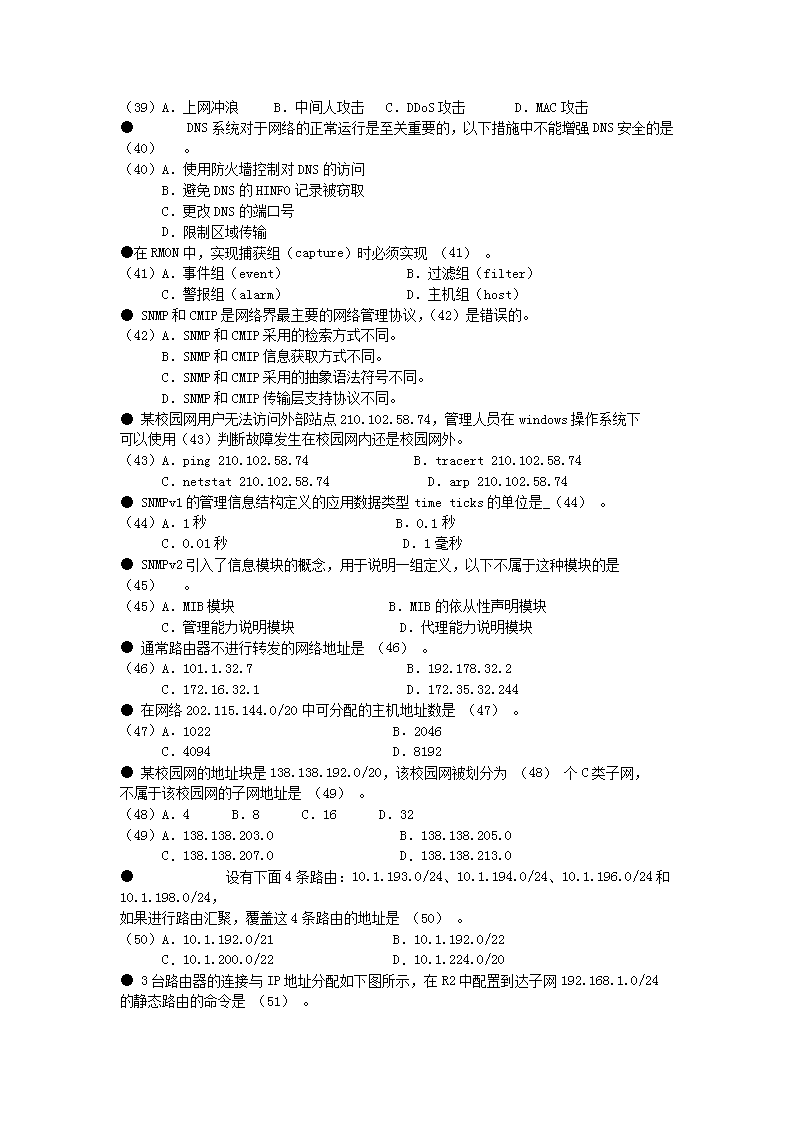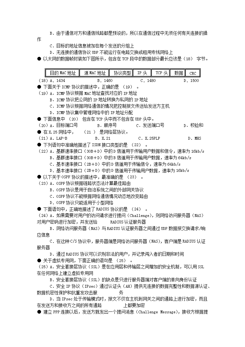 【文档预览】 无忧考网整理发布2006上半年网络工程师考试真题及答案-上午卷(Word版),前五页预览如下: