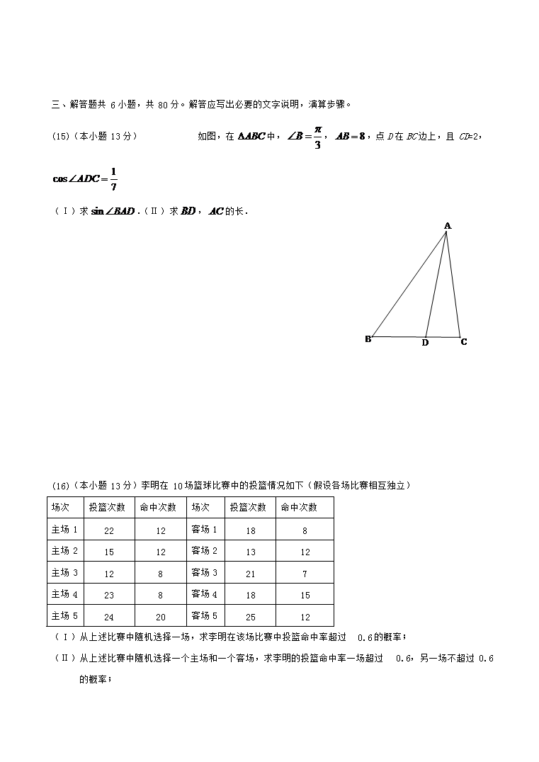 【文档名称】 2014年北京高考理科数学真题及答案(Word版).doc