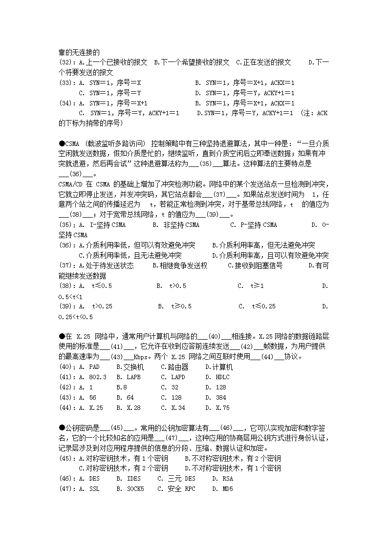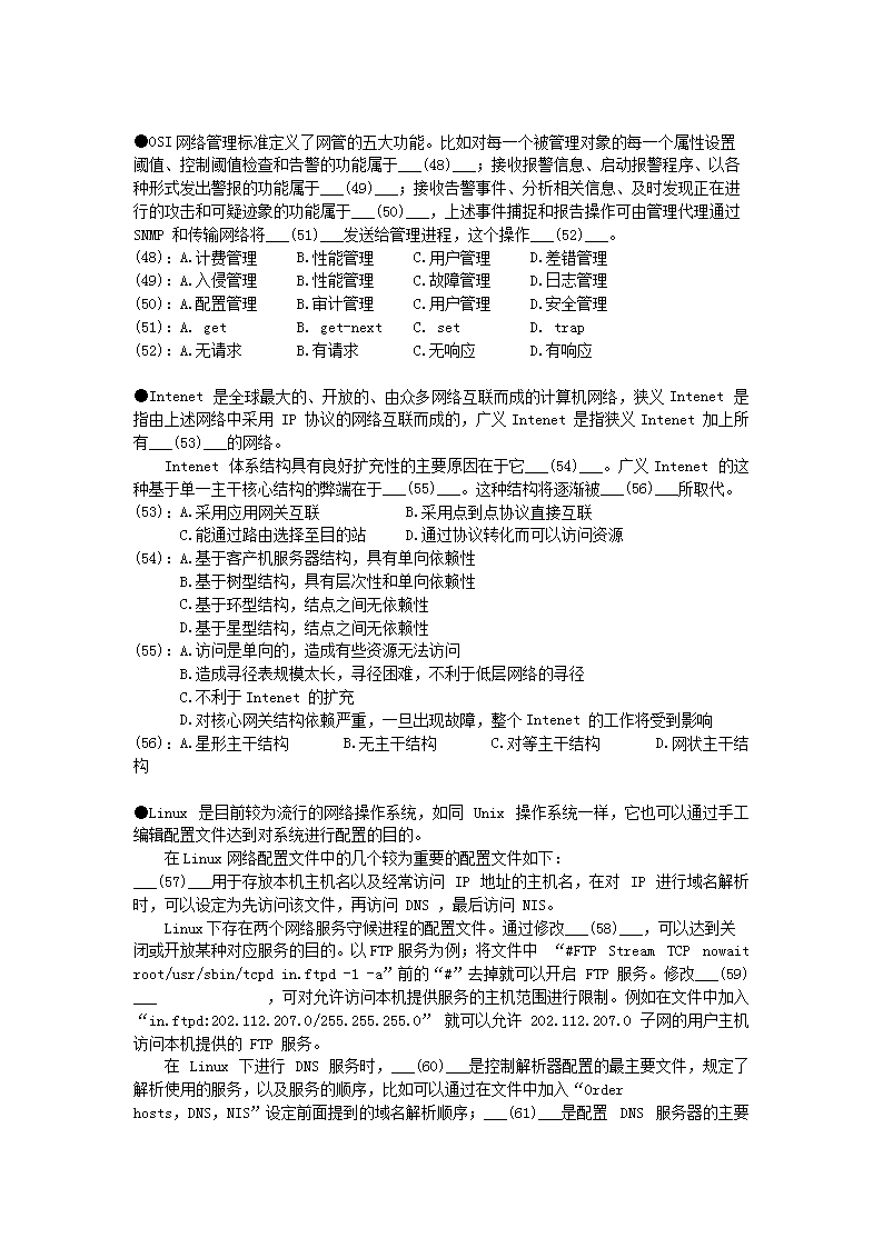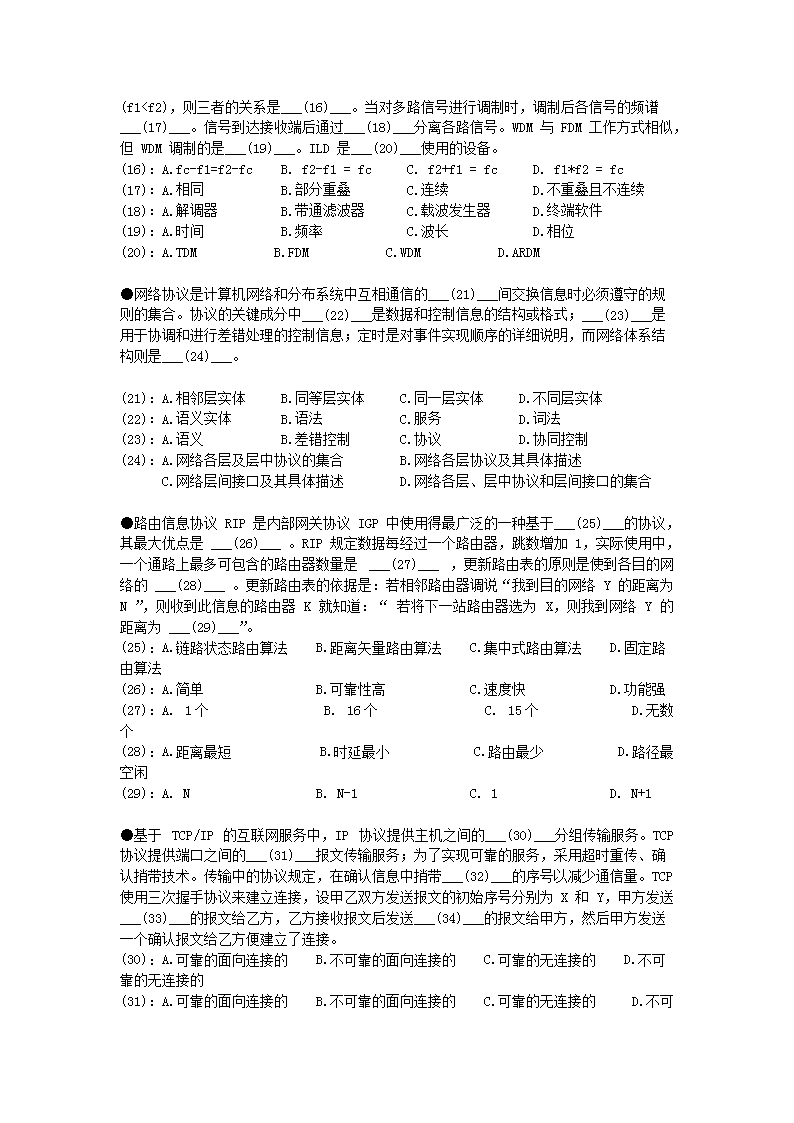 【文档预览】 无忧考网整理发布2001上半年网络工程师考试真题及答案-上午卷(Word版),前五页预览如下: