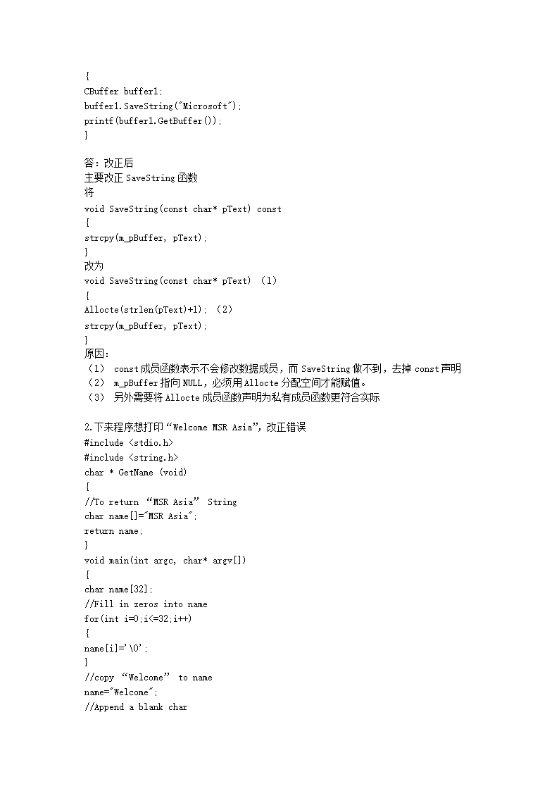 【文档名称】 微软研究院笔试题目附参考答案(Word版).doc
