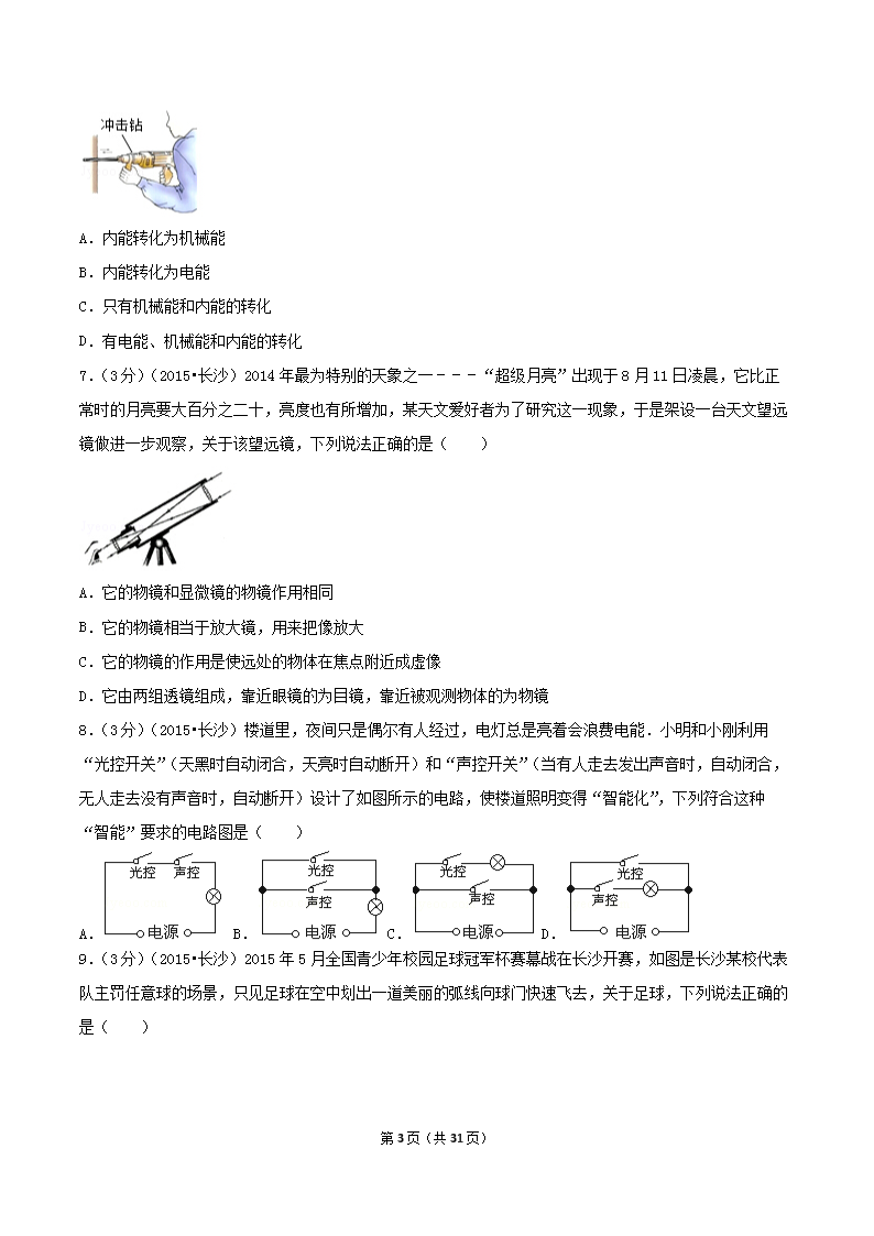 【文档名称】 2015年湖南省长沙市中考物理真题及答案(Word版).doc