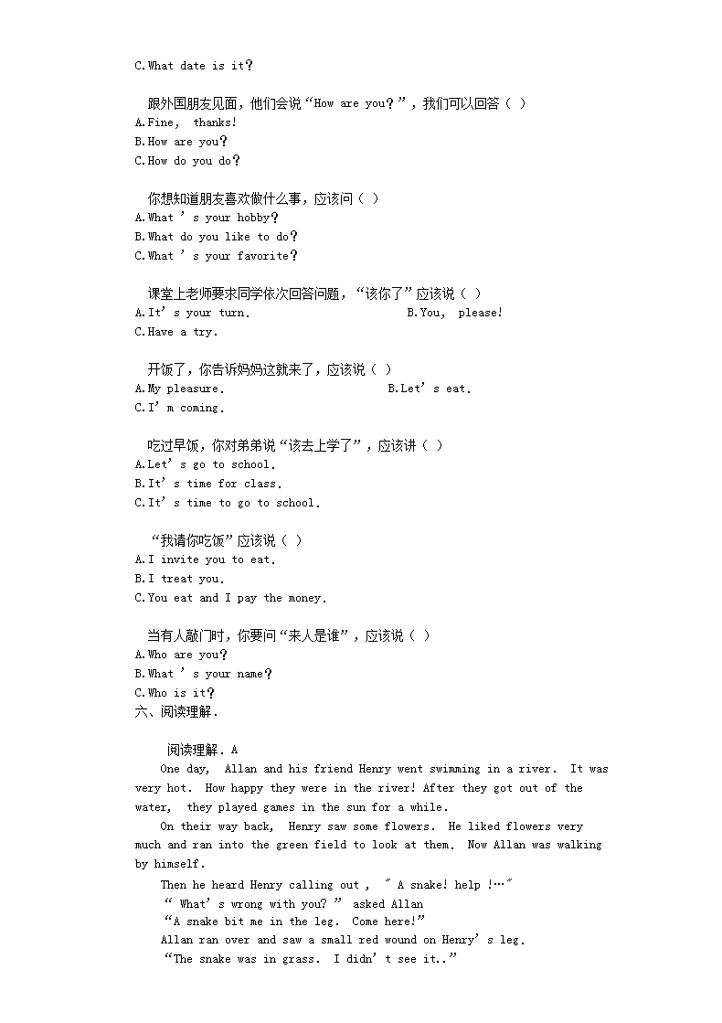 【文档名称】 2019年广东广州小升初英语真题及答案(Word版).doc