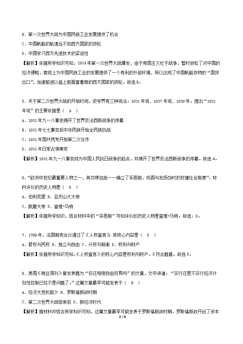 【文档预览】 无忧考网整理发布2018年湖南省长沙市中考历史真题及答案(Word版),前五页预览如下: