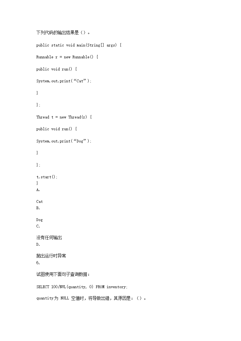 【文档预览】 无忧考网整理发布中兴TCSD标准考试JAVA试题(Word版),前五页预览如下: