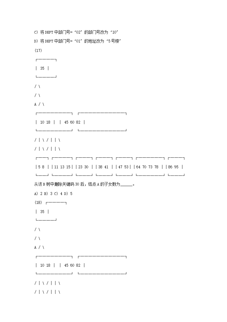 【文档名称】 2002年9月全国计算机三级数据库技术考试真题及答案(Word版).doc