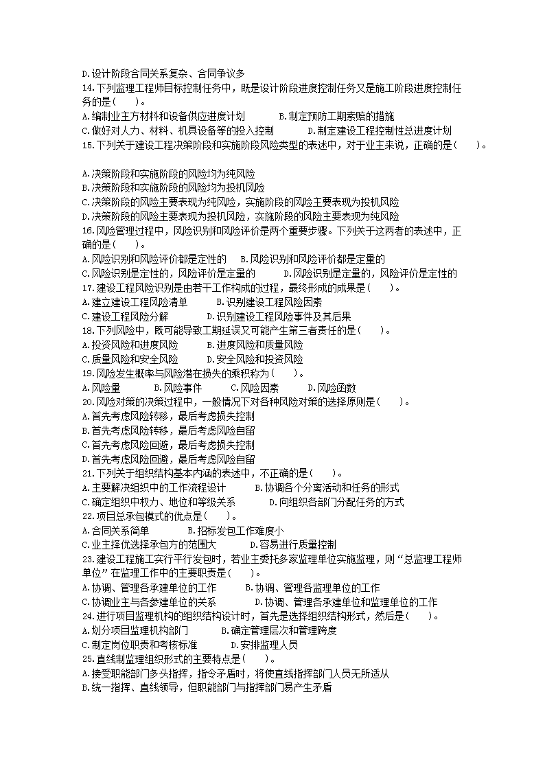 【文档名称】 2009年监理工程师考试理论与法规真题及答案(Word版).doc