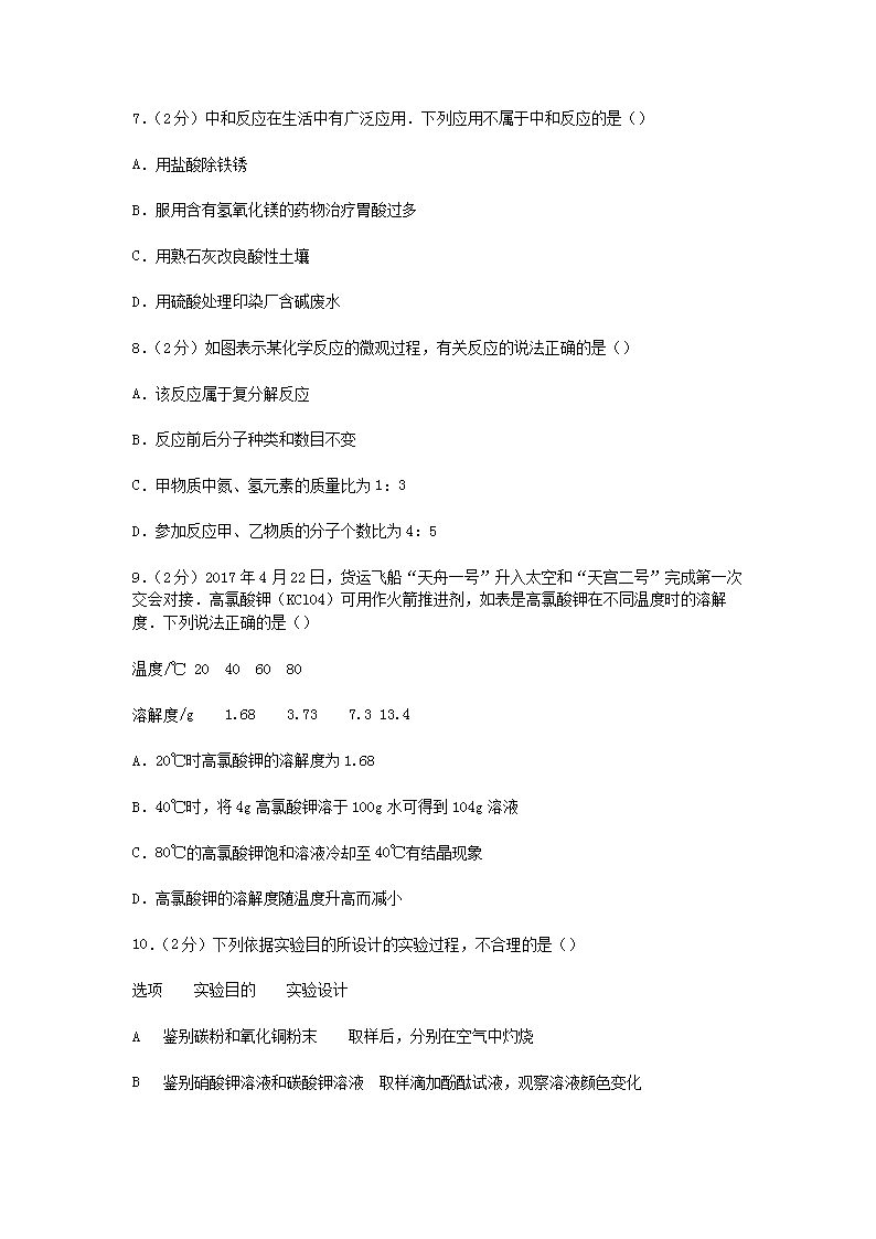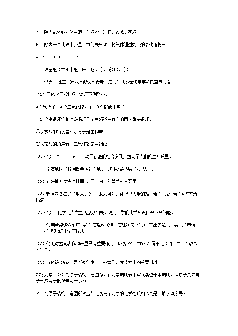 【文档名称】 2017年新疆乌鲁木齐中考化学真题及答案(Word版).doc
