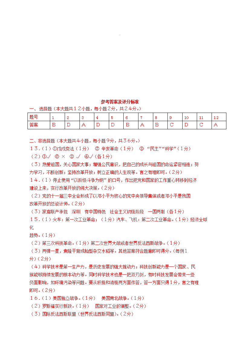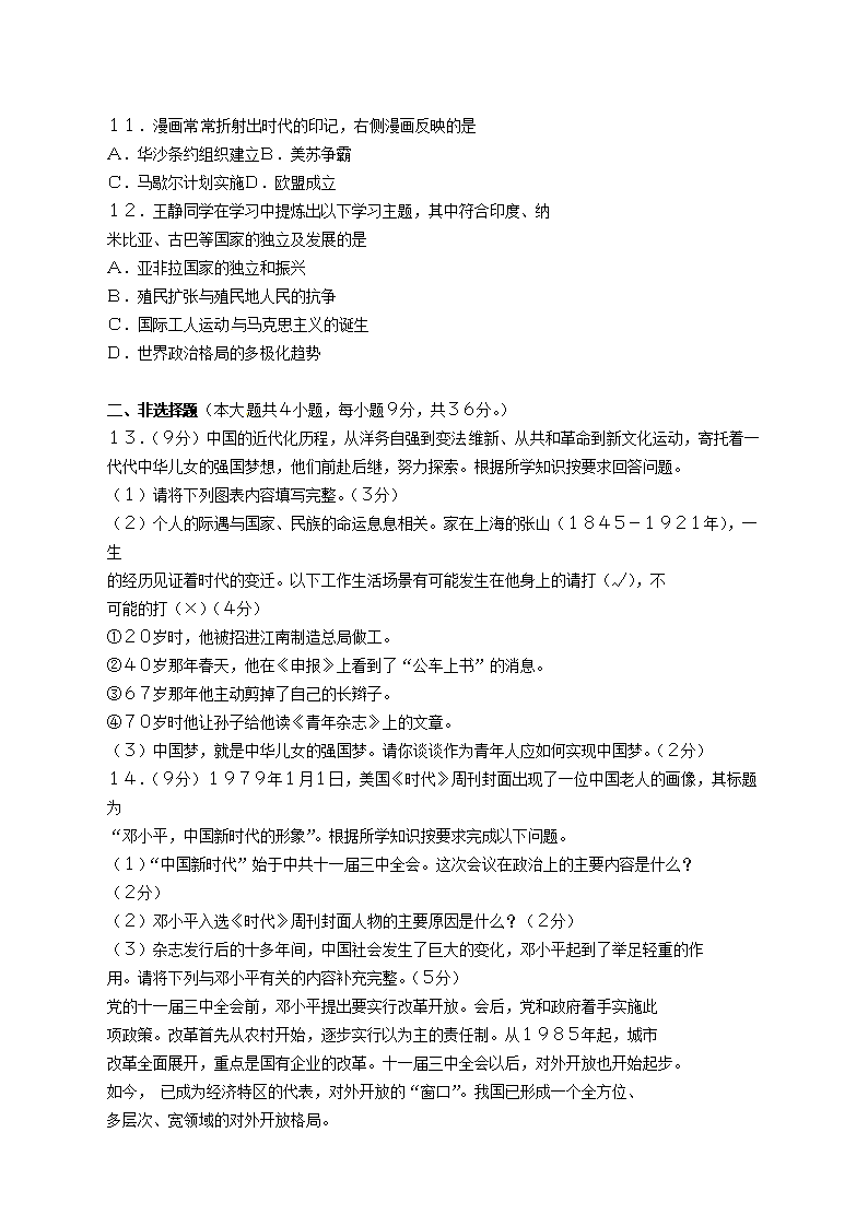 【文档名称】 2015年新疆中考历史真题及答案(Word版).doc