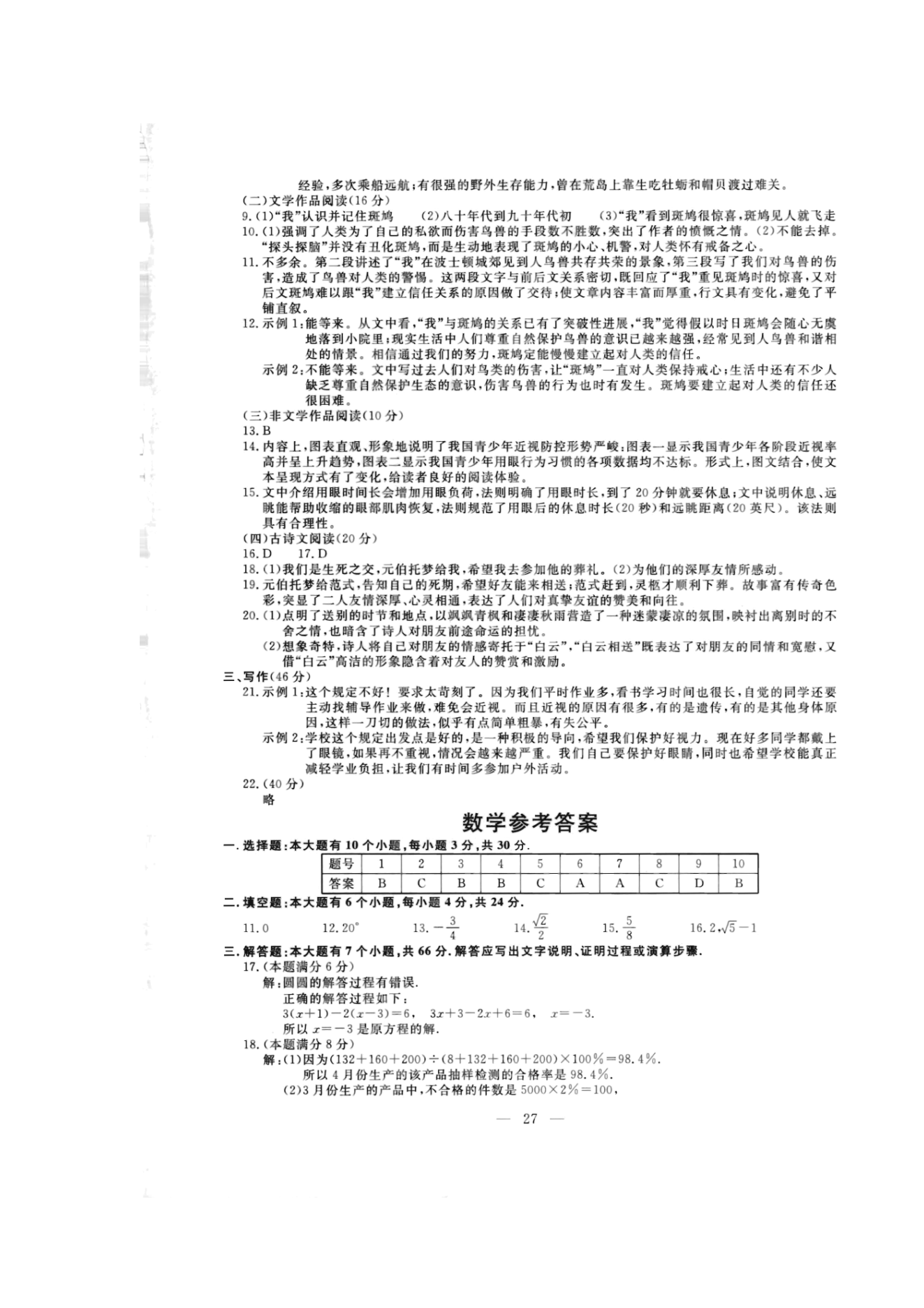 【文档预览】 无忧考网整理发布2020年浙江杭州中考数学真题及答案(图片版),前五页预览如下: