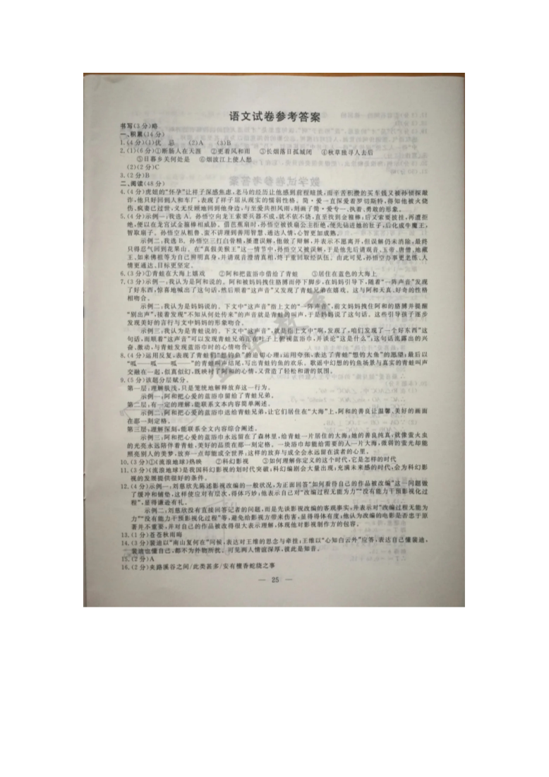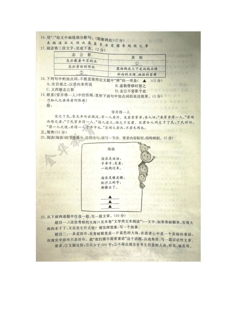 【文档名称】 2020年浙江丽水中考语文真题及答案(图片版).doc