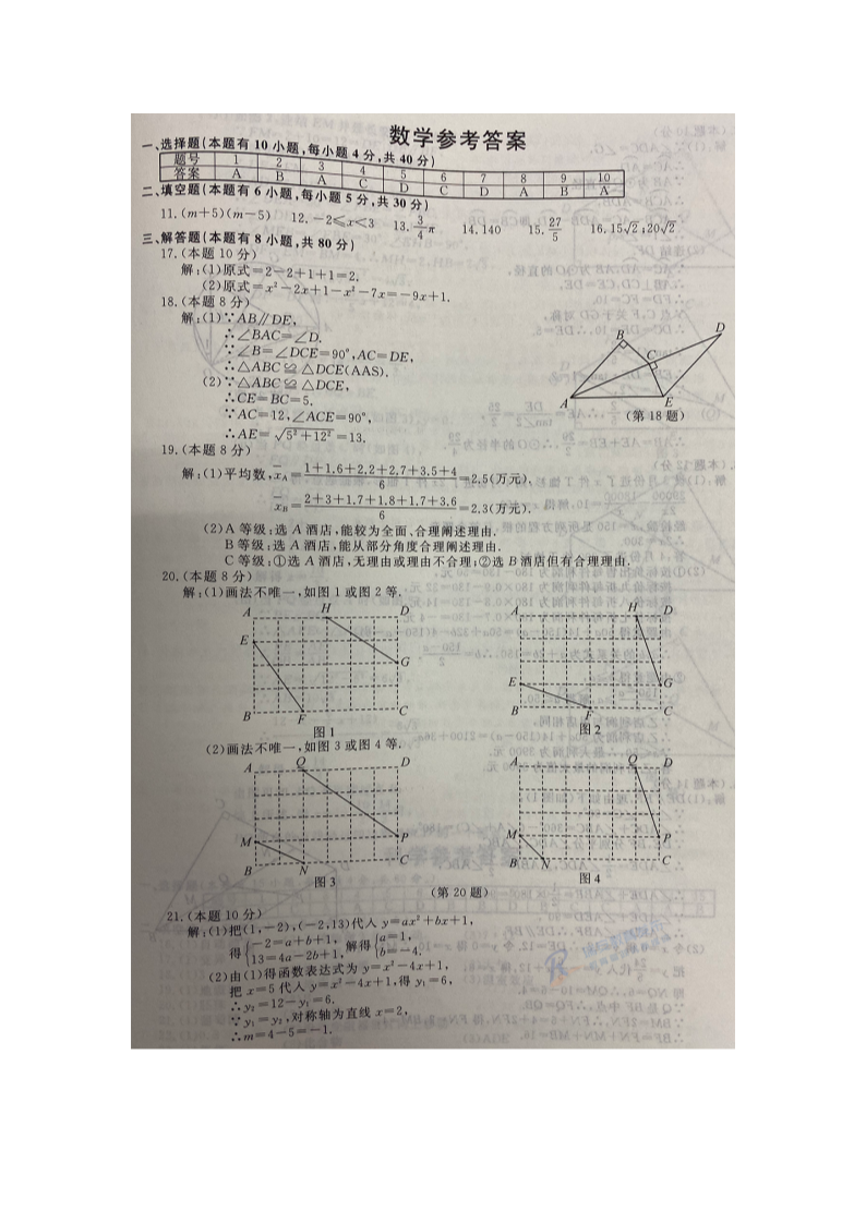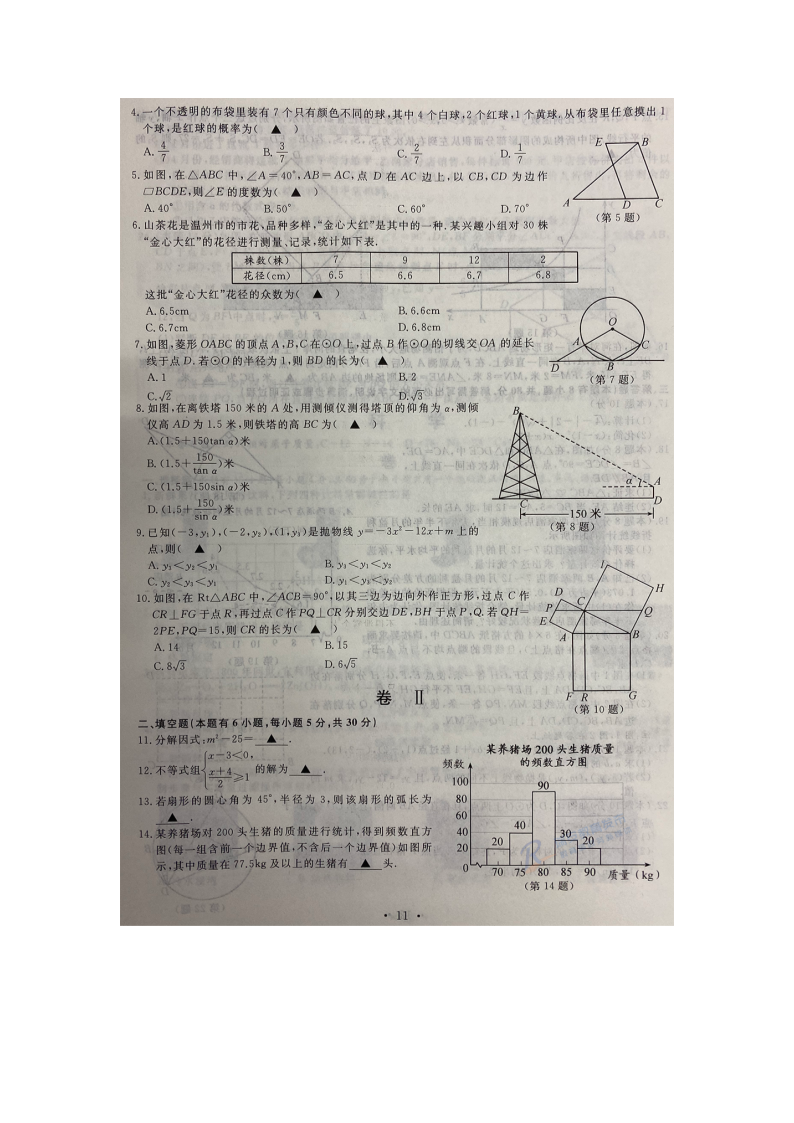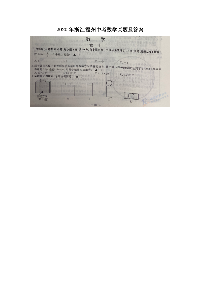 【文档名称】 2020年浙江温州中考数学真题及答案(图片版).doc