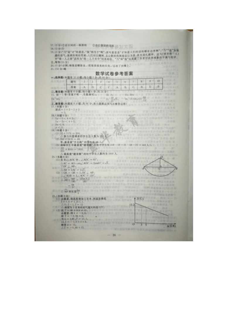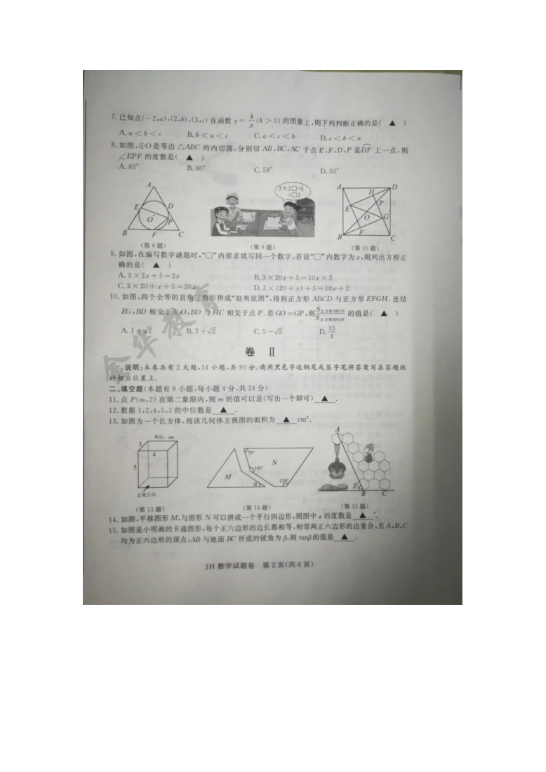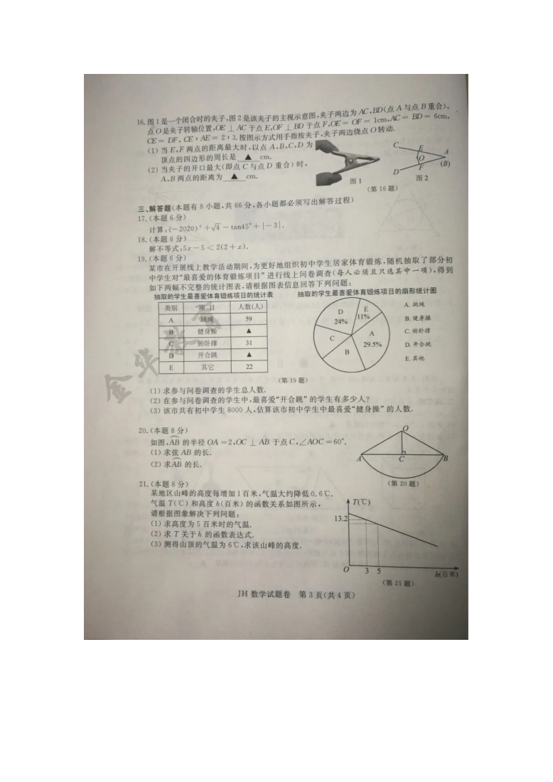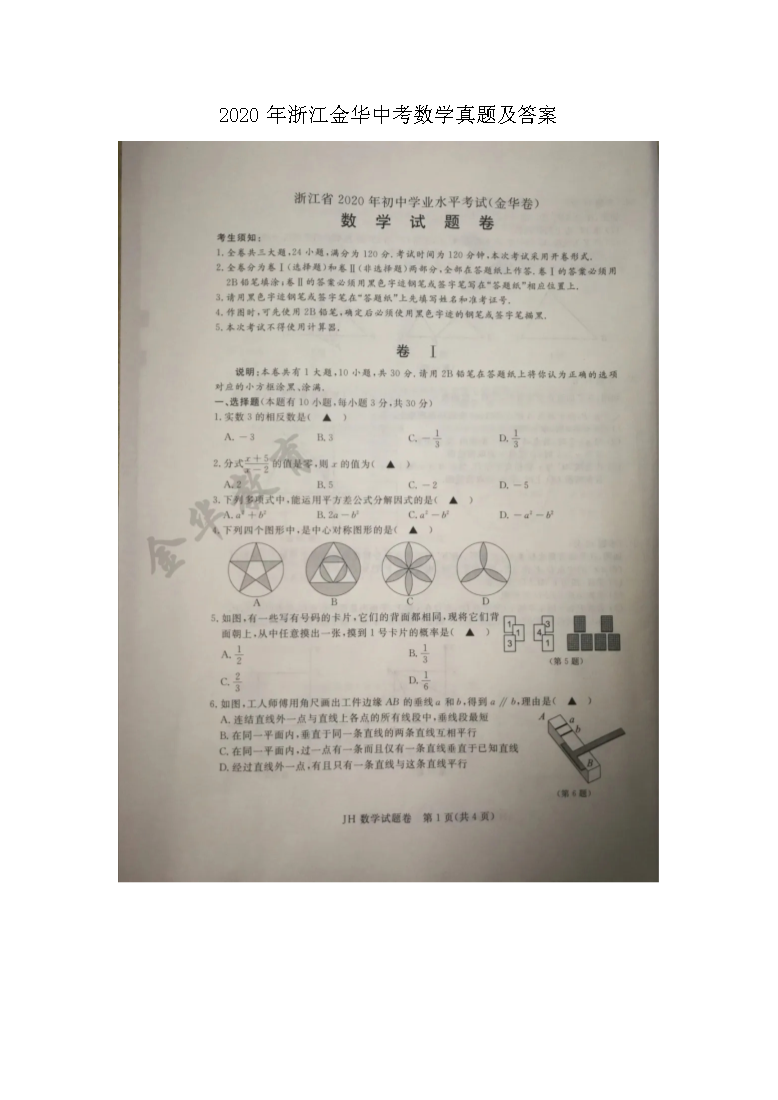 【文档名称】 2020年浙江金华中考数学真题及答案(图片版).doc