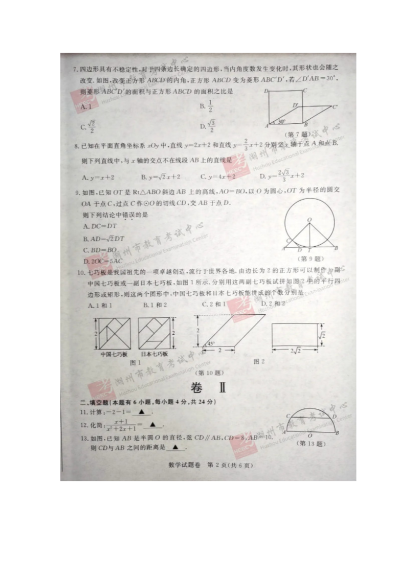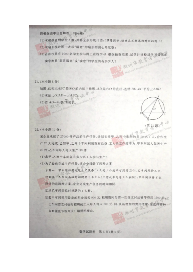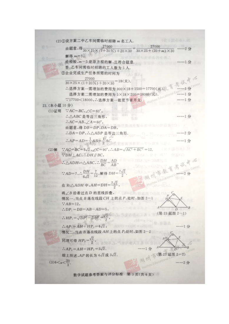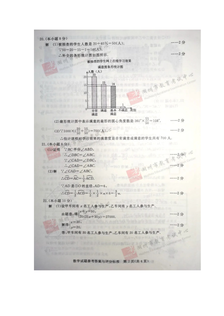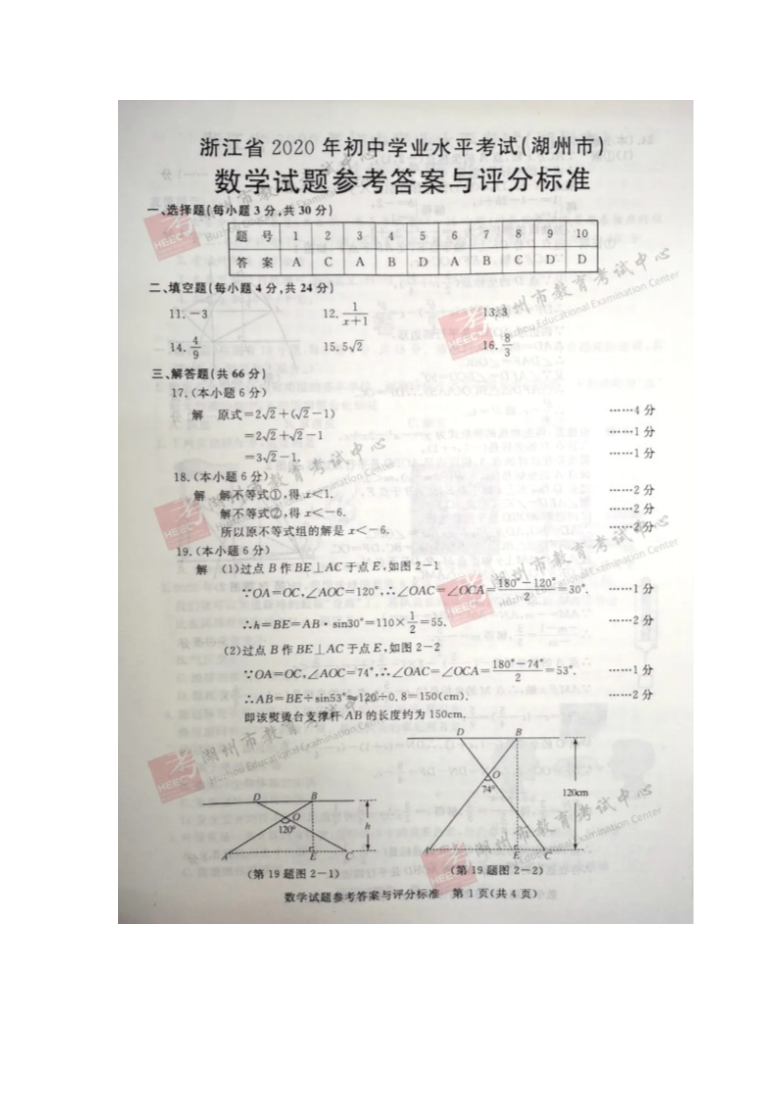 【文档预览】 无忧考网整理发布2020年浙江湖州中考数学真题及答案(图片版),前五页预览如下: