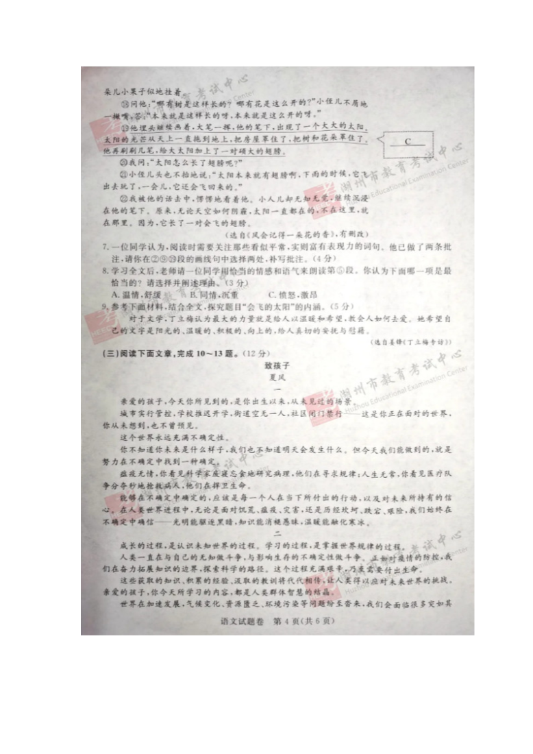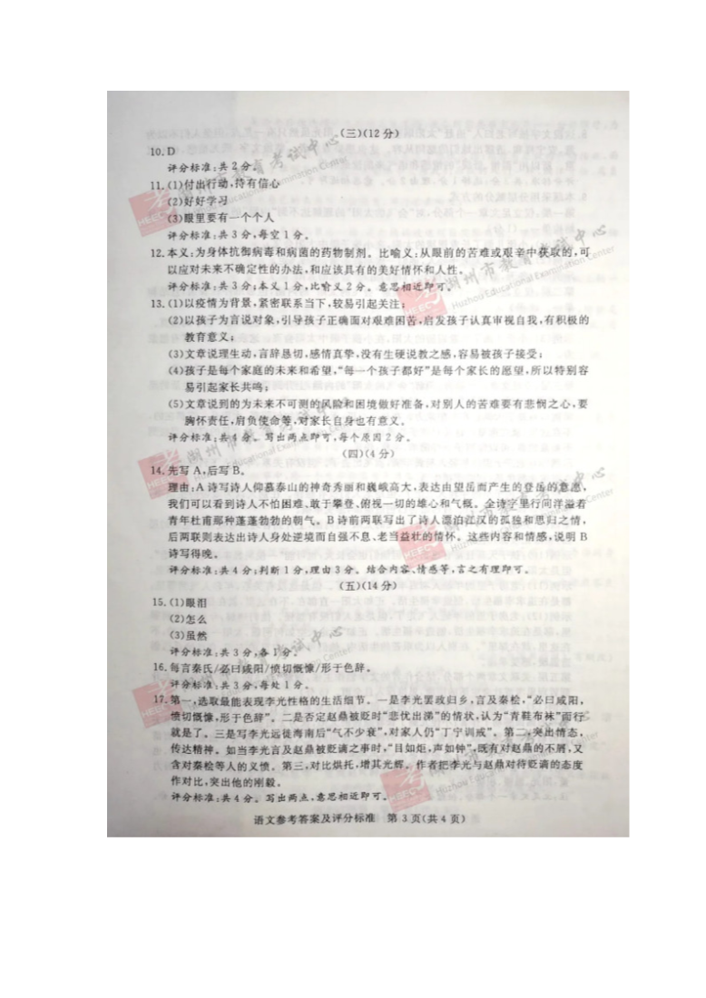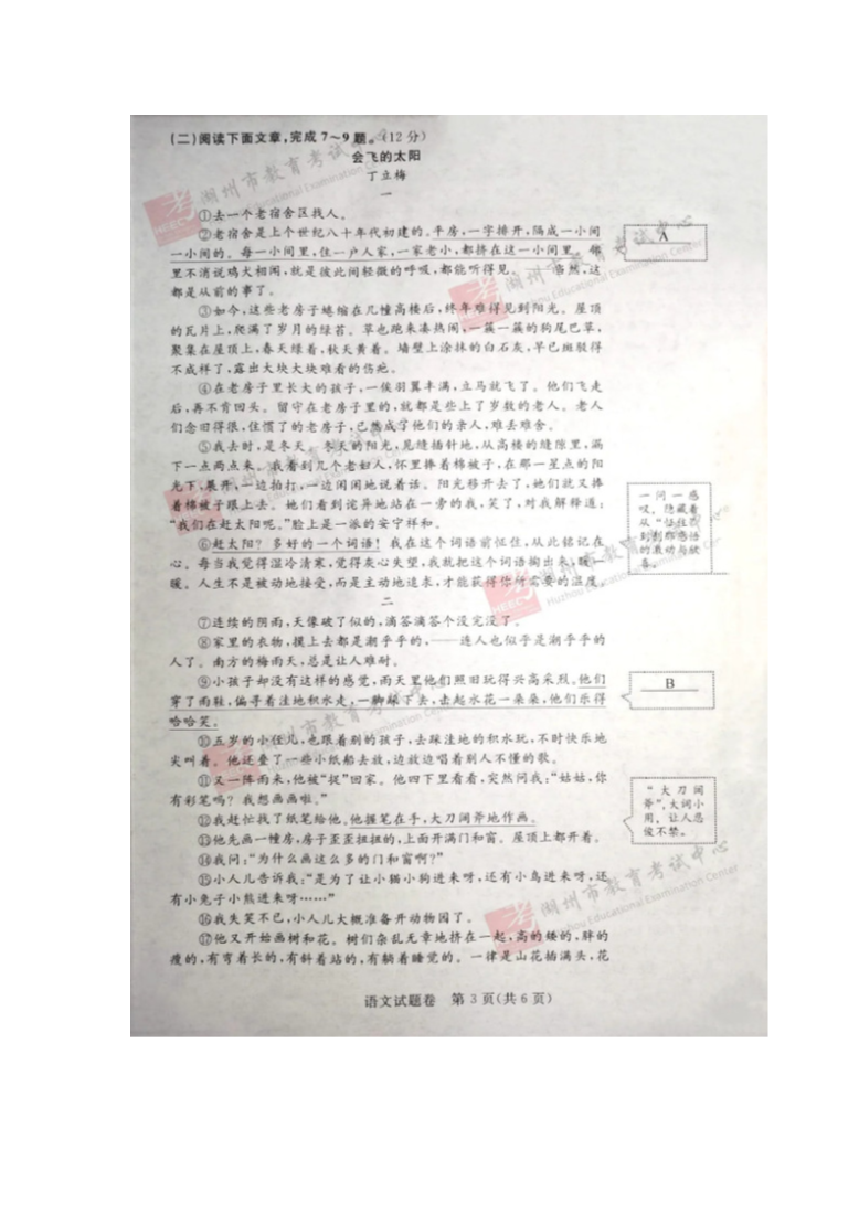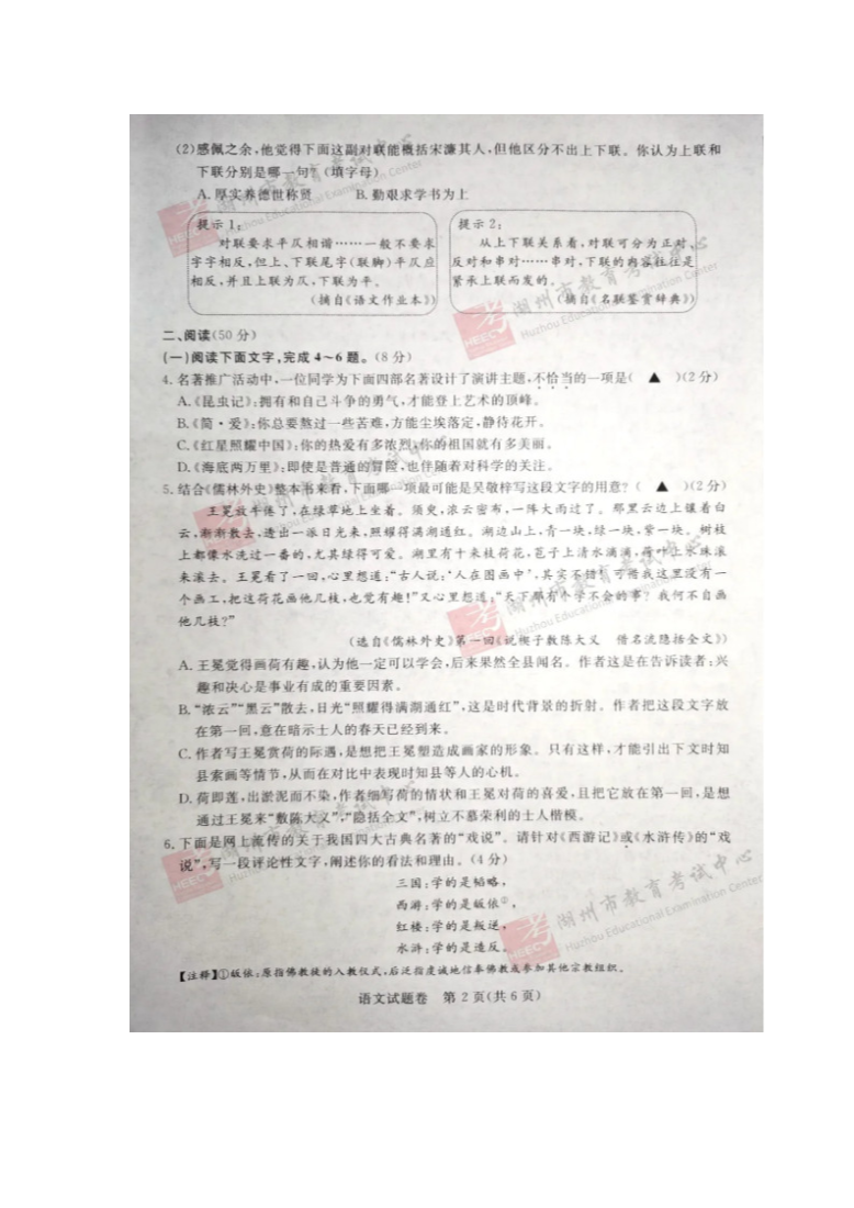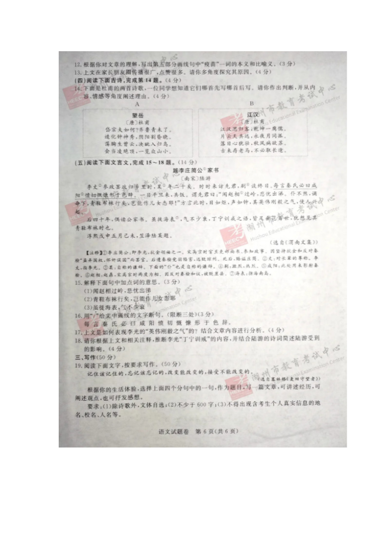 【文档预览】 无忧考网整理发布2020年浙江湖州中考语文真题及答案(图片版),前五页预览如下: