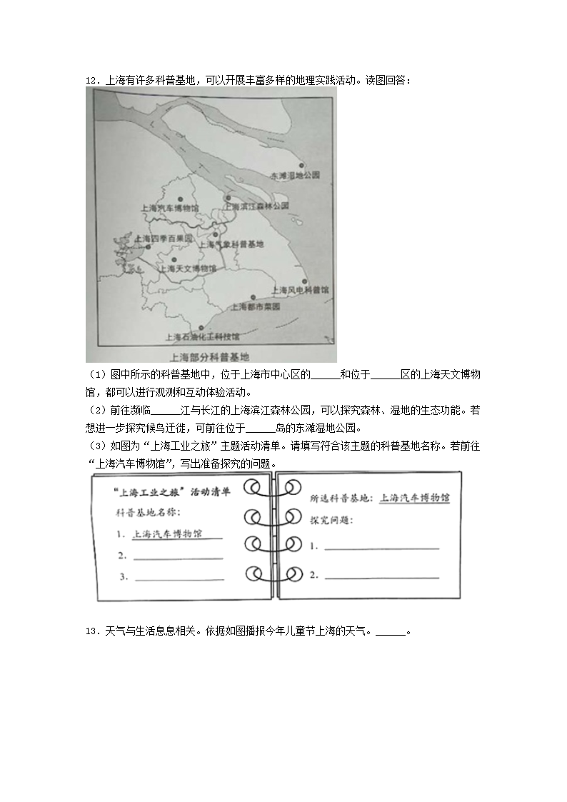 【文档名称】 2020年上海普陀中考地理真题及答案(Word版).doc