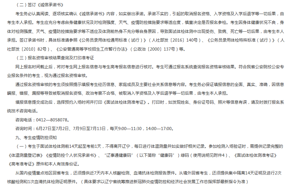 2020辽宁公安普通高等院校公安专业招生面试体检体测政治考察网上报名时间:6月27日起
