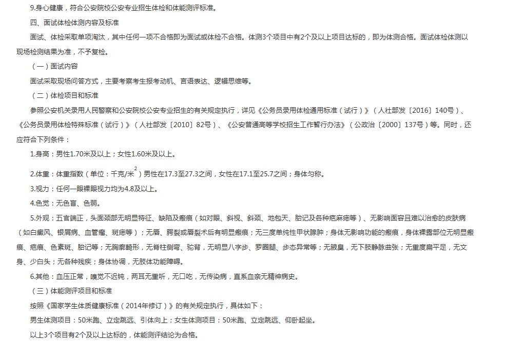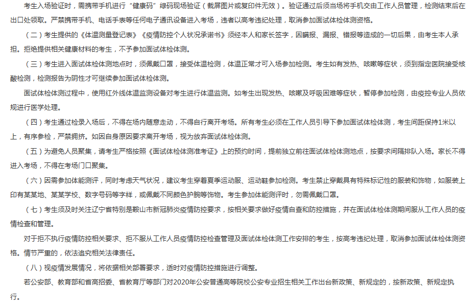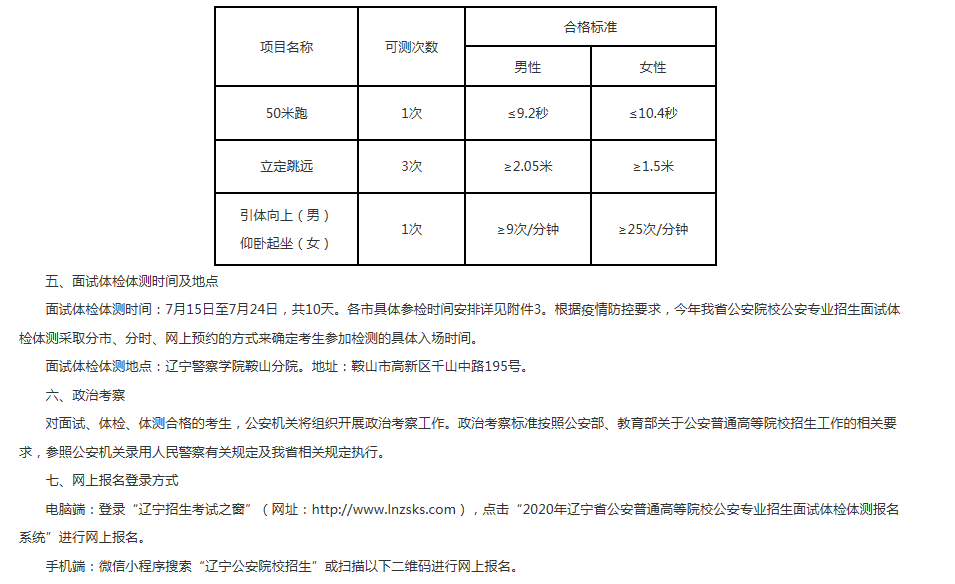 2020辽宁公安普通高等院校公安专业招生面试体检体测政治考察