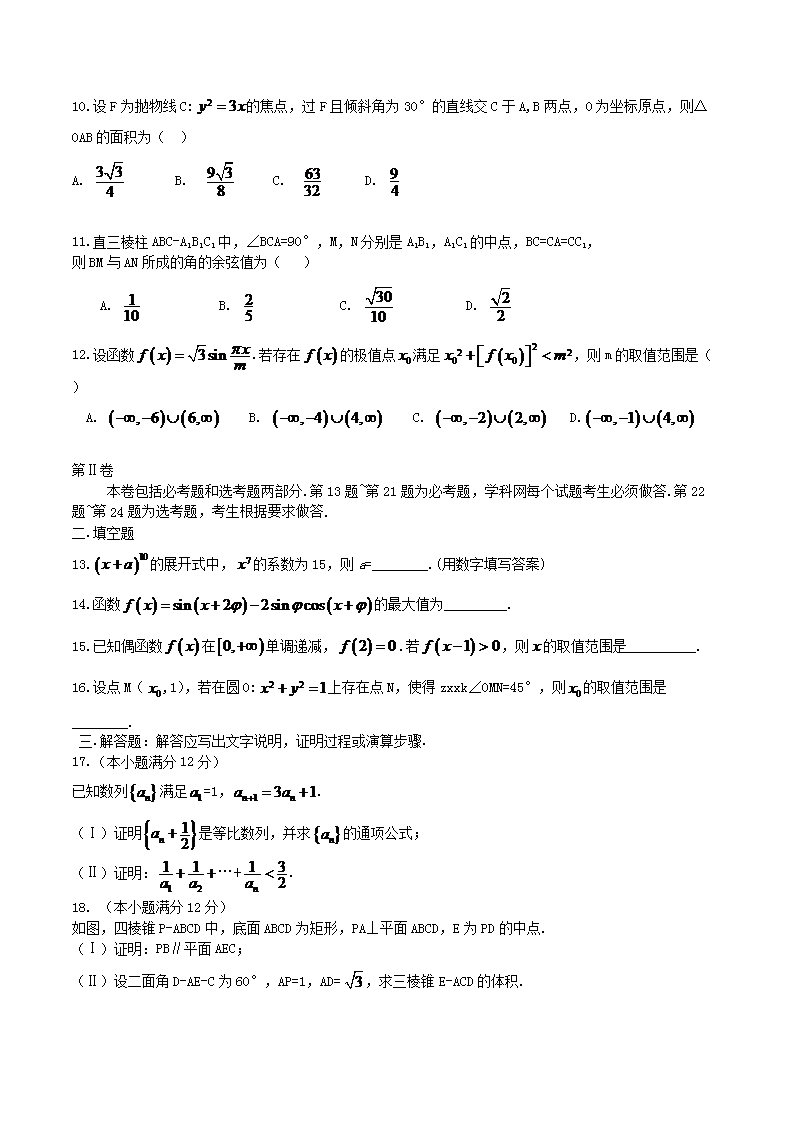 【文档预览】 无忧考网整理发布2014年海南高考理科数学真题及答案(Word版),前五页预览如下:
