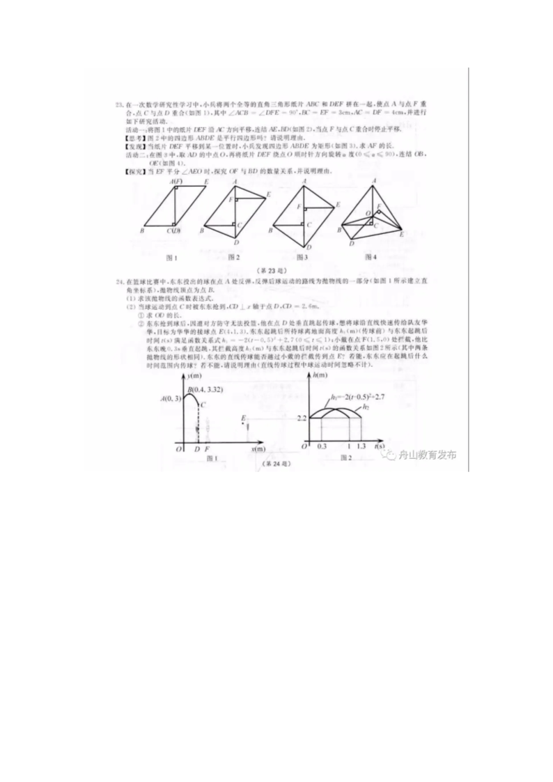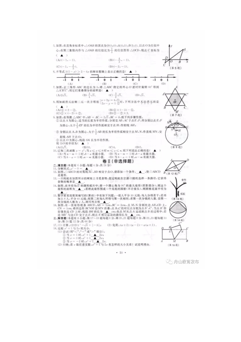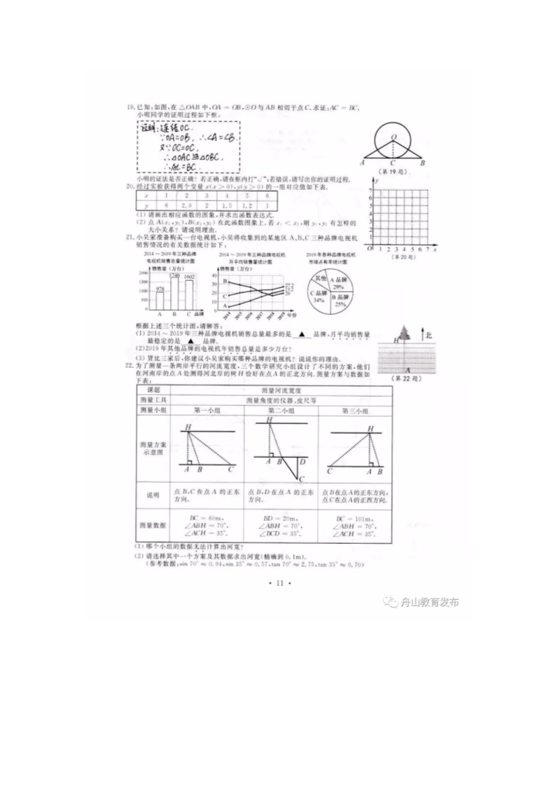 【文档预览】 无忧考网整理发布2020年浙江舟山中考数学真题及答案(图片版),前五页预览如下: